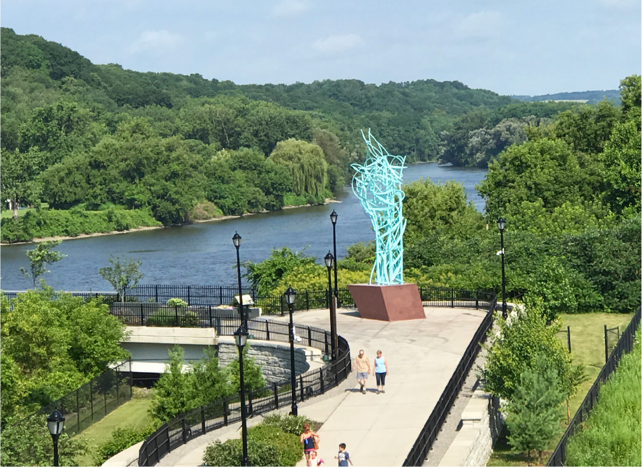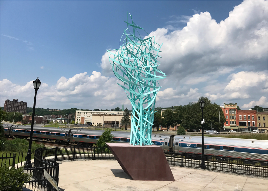 My last large-scale project in the public realm, the three sculptures of the pedestrian bridge in Amsterdam NY, including DreamRiver and Entrance to Now.