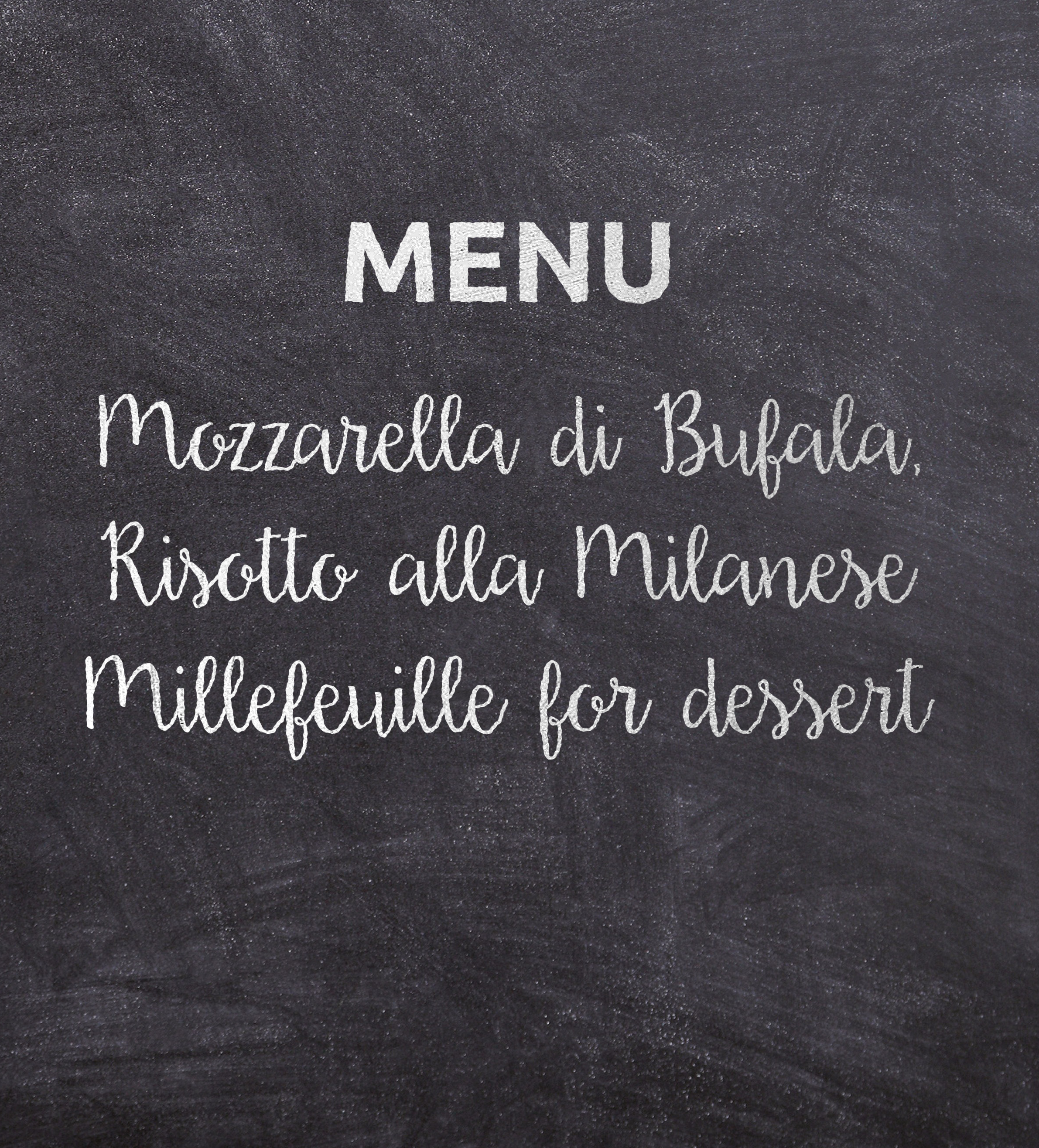 I’d serve Mozzarella di Bufala, Risotto alla Milanese and Millefeuille for dessert.