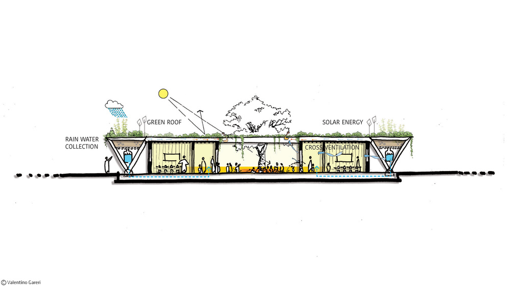 The prototype of a modular school for sub-Saharan regions provides a sustainable, modular and flexible school, easy to build, with low costs of construction and made by local materials which perfectly adapt with the context and surroundings.