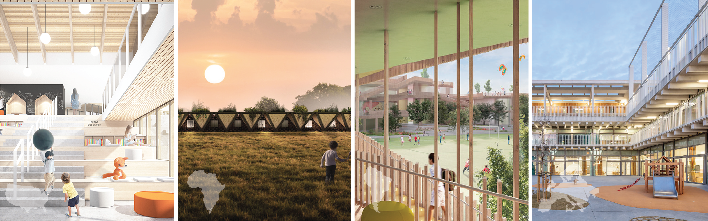 The place will thus offer spaces developed in order to meet the socio-emotional needs of the students. The concept aims to create in children a feeling of belonging to their place of learning as well as a desire to discover places along their journey.