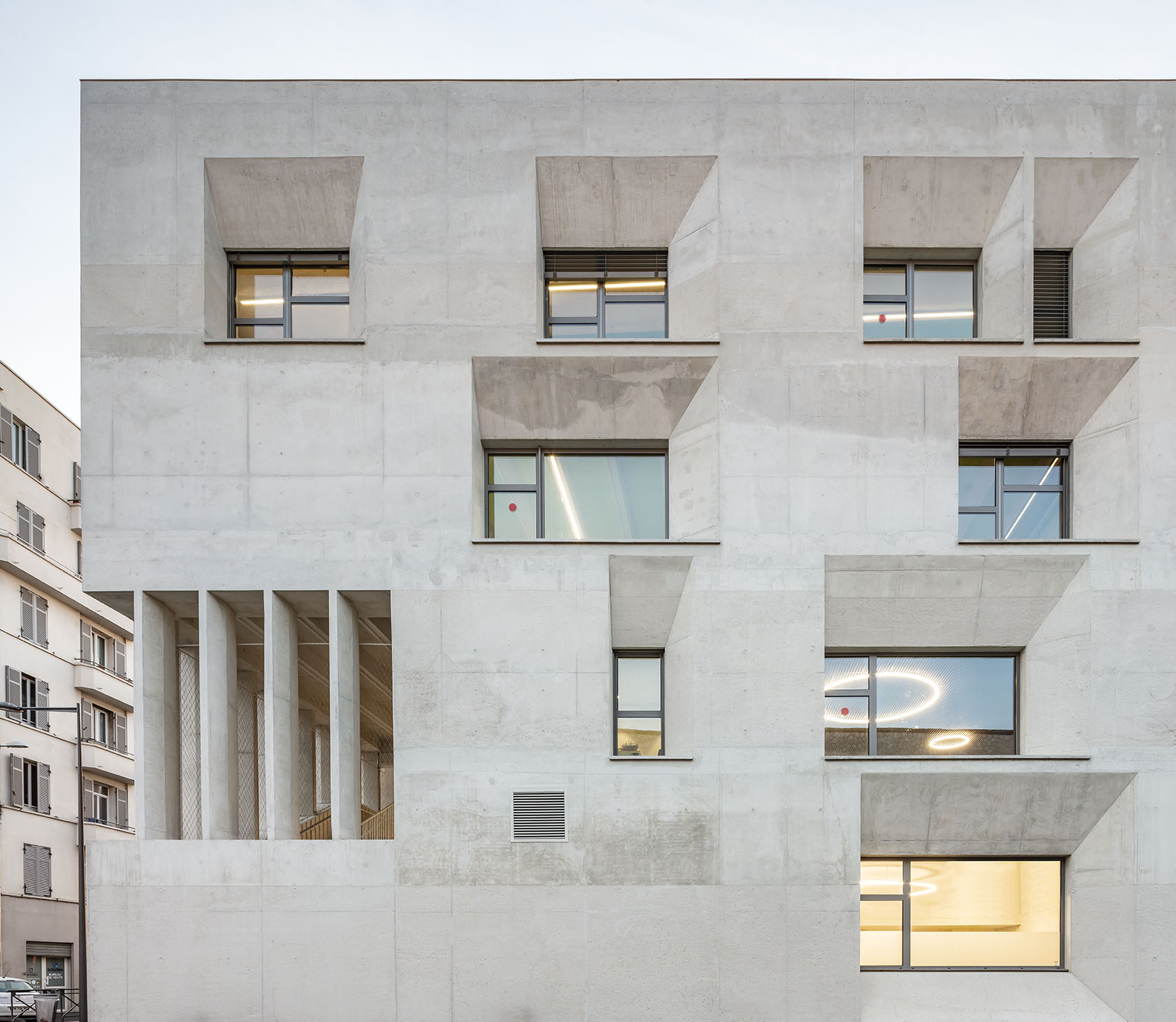Here, the quantity of architectural and technical components is deliberately limited. Architectural sobriety, structure durability and easy maintenance come to mind as well as the material’s close connection with the Mediterranean context of the city of Marseille.