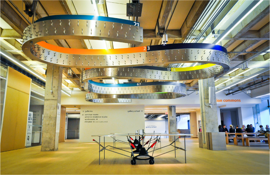 Entro designed the way-finding and signage program in collaboration with HPA Architects for the Weston Family Learning Centre at the Art Gallery of Ontario. Oversized typography for easy navigation makes is easy for young students to find their way. A snake-like coat rack (by HPA) can be lowered to hang the coats and backpacks and then lifted up to create space underneath.