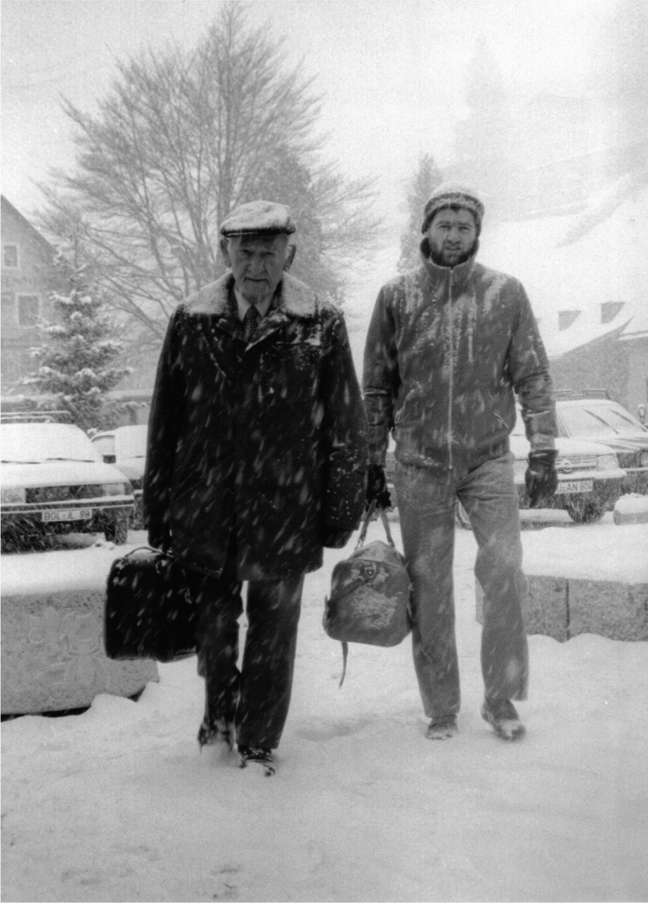 Anton Stankowski (left) and Udo Schliemann (right) arriving in Berchtesgaden in the German Alps to present to the Olympic Committee after winning the logo competition for the Germany’s bid for the Olympic Winter Games.