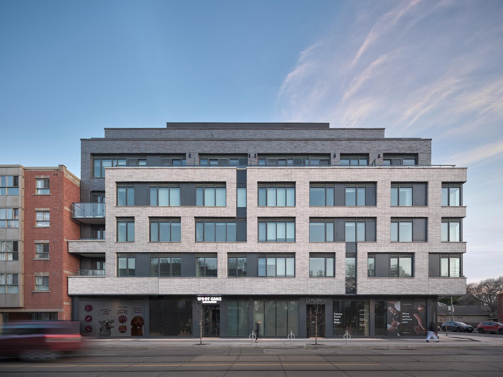 Located east of Toronto’s downtown core, 115 Larchmount is a new mixed-use purpose-built rental building that occupies the site of a former 7-Eleven store. The six-storey multi-unit uses a geothermal heating and cooling system and contributes context-appropriate density and diverse housing stock to a residential area largely defined by single-family homes.