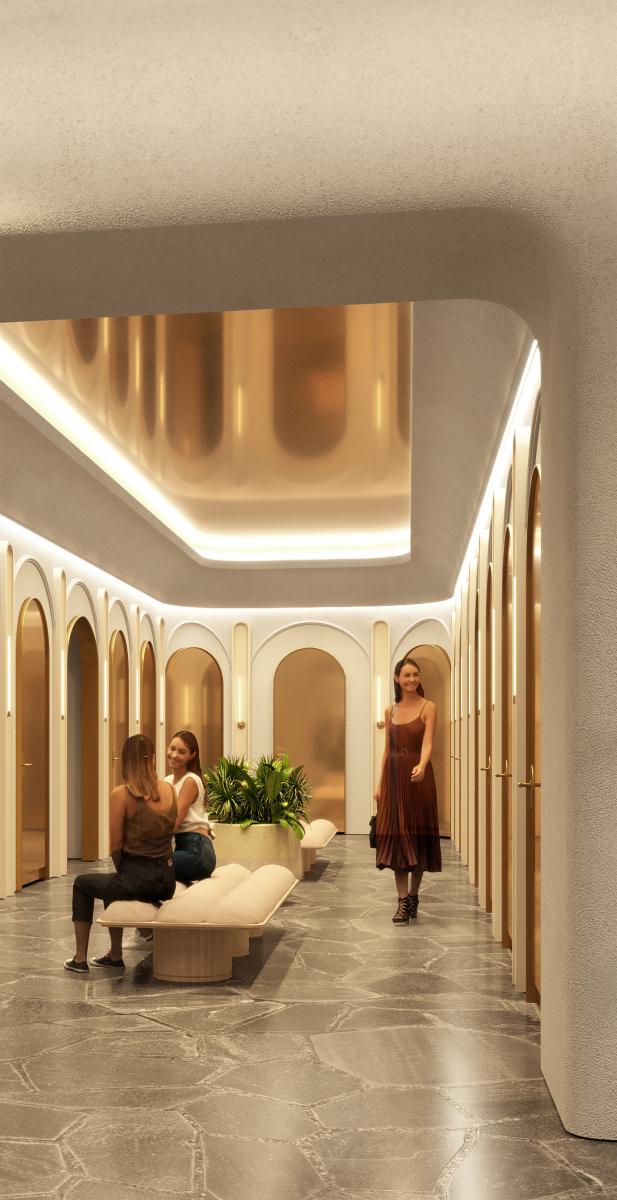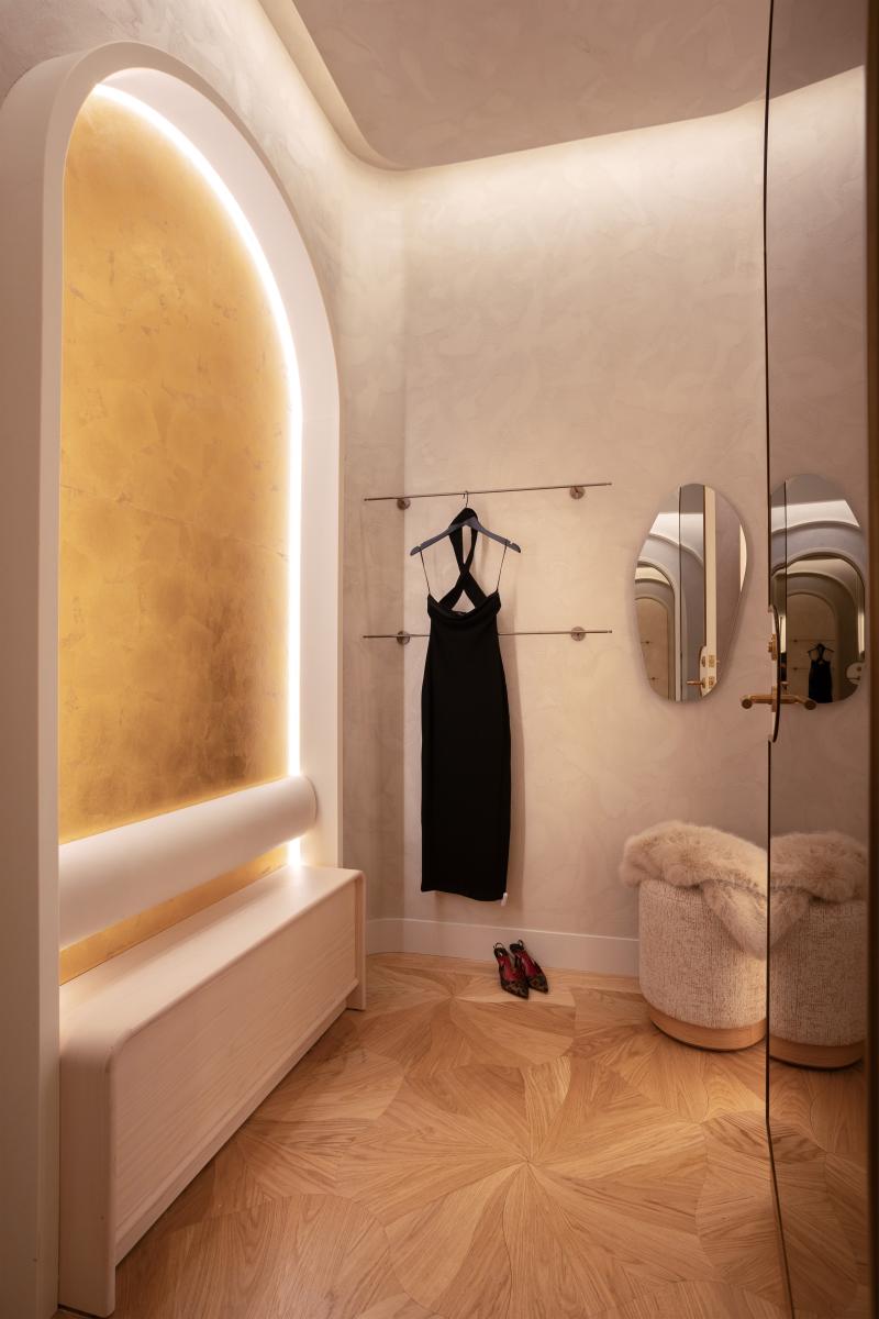 At the heart of the store's design is Future/Nature by Golmann, an abstract and fluid digital work that immerses visitors in the changing beauty of nature. Water, light, cells, and matter blend into a surreal narrative that arouses curiosity and wonder. Displayed on a curved LED screen measuring 28.3 feet by 11 feet, this artwork complements the store's architecture, guiding visitors through an experience where art and fashion converge, leaving a lasting impression. The store's architectural details, combined with the art of Bérénice Golmann, turn the space into a dreamlike destination where time seems suspended and every element inspires. From the large arches at the entrance to the use of timeless materials such as brass and stone, the store invites exploration and discovery. Intimate fitting rooms and carefully arranged presentations create an atmosphere that is both luxurious and personal. It goes beyond the simple shopping experience – it is about creating an emotional connection with the brand. The ROYALMOUNT flagship store illustrates how the integration of art, design, and technology can create an engaging commercial environment that stands out.