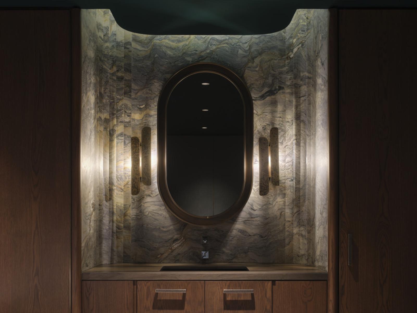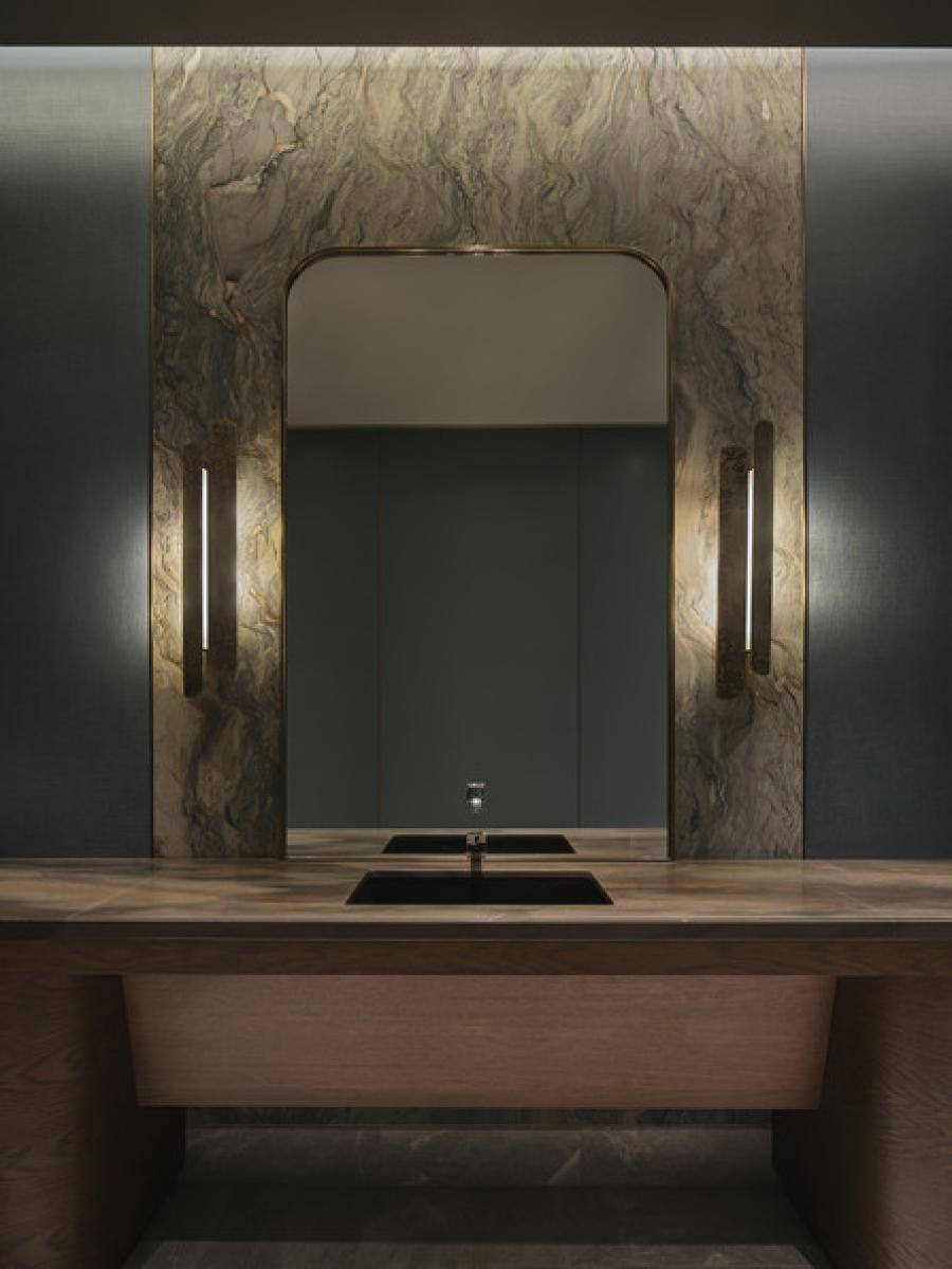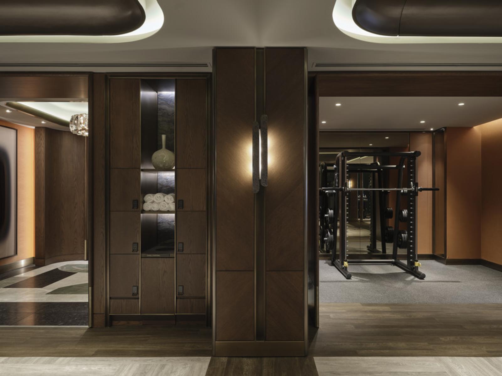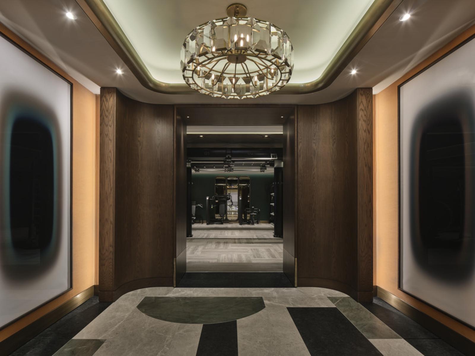 The redesign of the hotel’s gym redefines fitness, luxury, and well-being, blending historical elegance with modern vitality. Drawing inspiration from the hotel’s Art Deco heritage, the design emphasizes scale, proportion, and "muscle." This is seen in the thick, sinuous lines and luxurious materials that evoke strength and refinement. Mirrored detailing encourages guests to embrace their reflection.