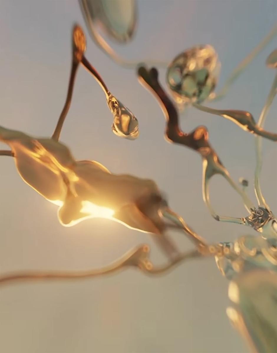 At the heart of the store's design is Future/Nature by Golmann, an abstract and fluid digital work that immerses visitors in the changing beauty of nature. Water, light, cells, and matter blend into a surreal narrative that arouses curiosity and wonder. Displayed on a curved LED screen measuring 28.3 feet by 11 feet, this artwork complements the store's architecture, guiding visitors through an experience where art and fashion converge, leaving a lasting impression. The store's architectural details, combined with the art of Bérénice Golmann, turn the space into a dreamlike destination where time seems suspended and every element inspires. From the large arches at the entrance to the use of timeless materials such as brass and stone, the store invites exploration and discovery. Intimate fitting rooms and carefully arranged presentations create an atmosphere that is both luxurious and personal. It goes beyond the simple shopping experience – it is about creating an emotional connection with the brand. The ROYALMOUNT flagship store illustrates how the integration of art, design, and technology can create an engaging commercial environment that stands out.