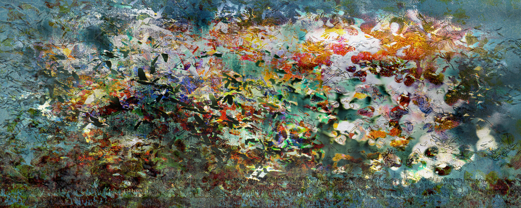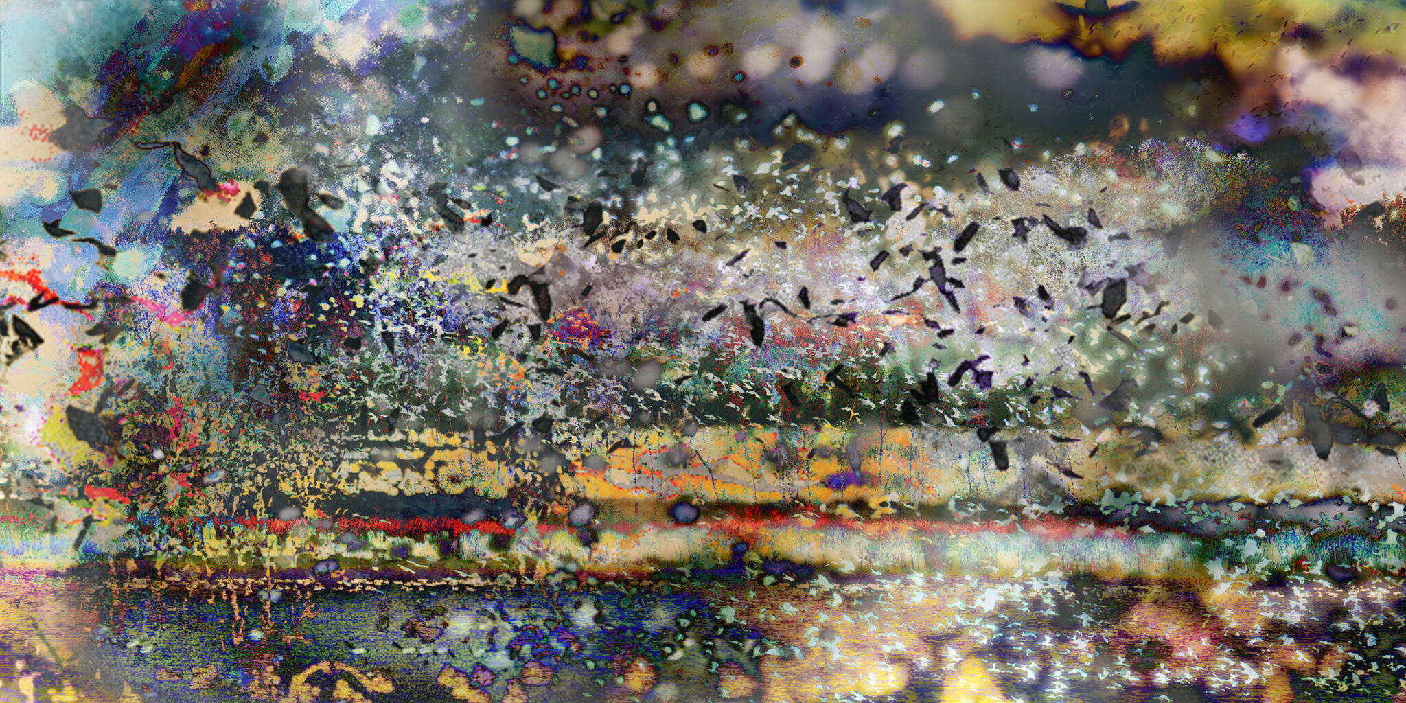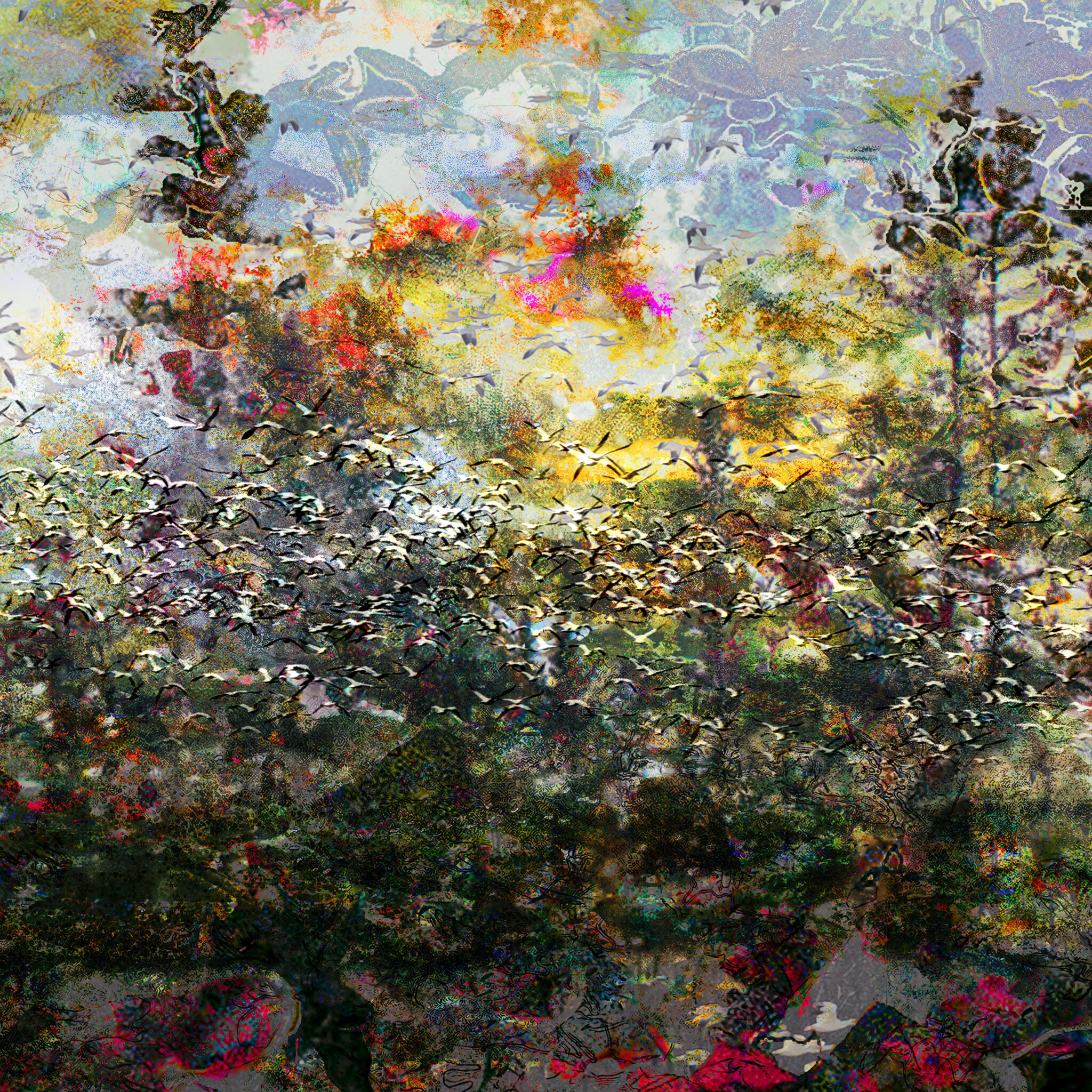 She chooses brushed metal as a printing medium for her flights of fancy and names her photographic assemblages by the date and time of the end of their creation.