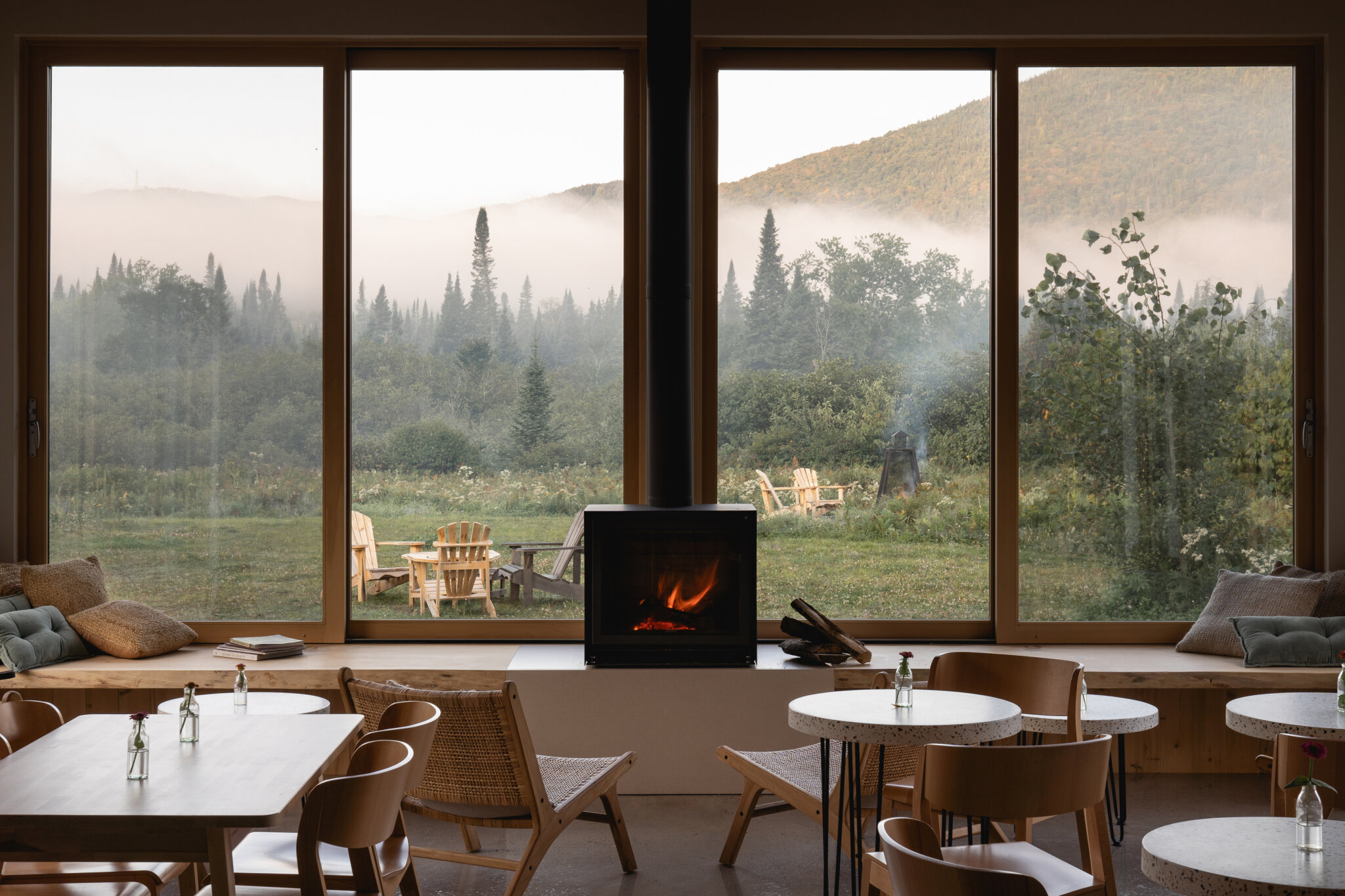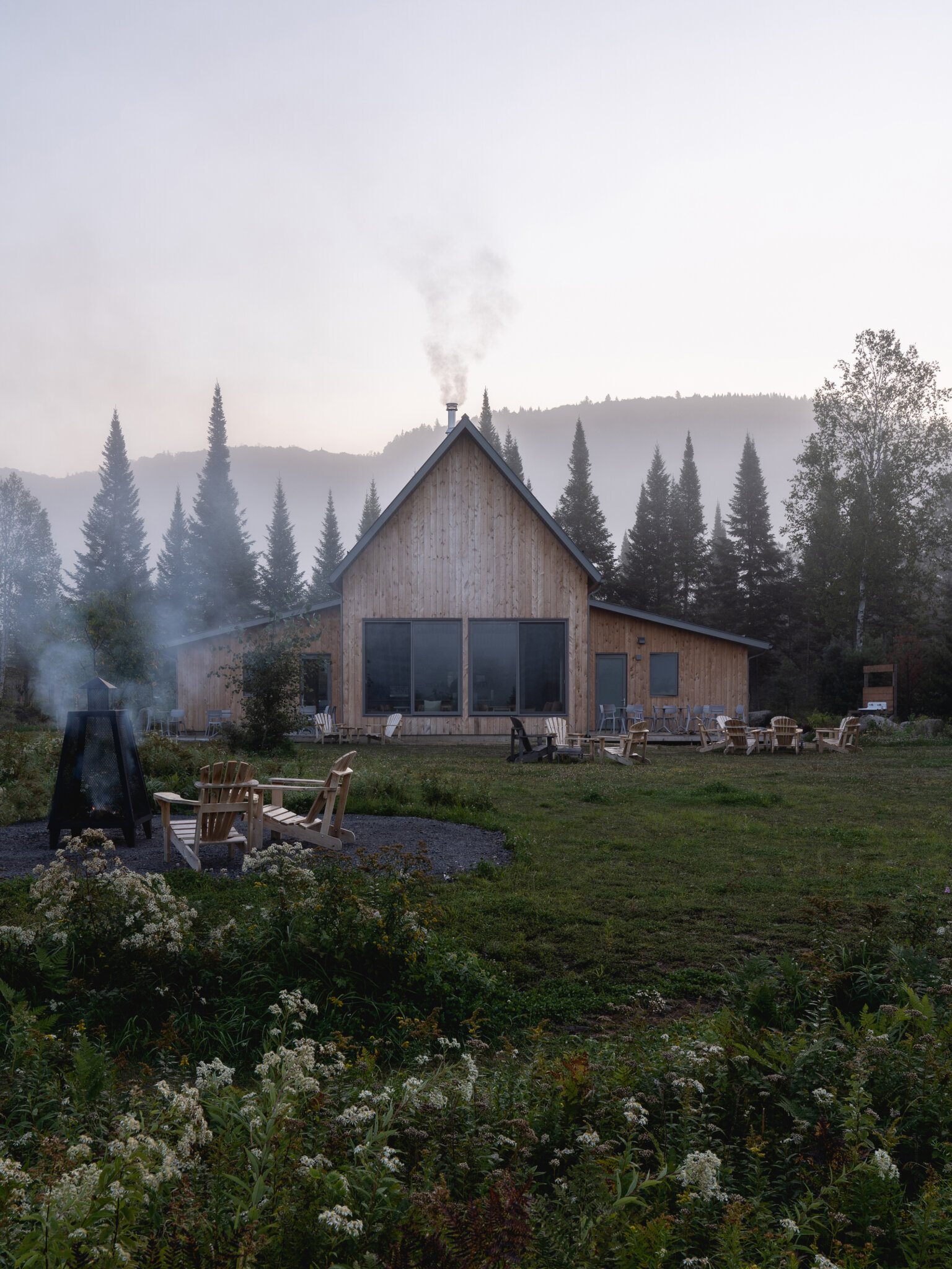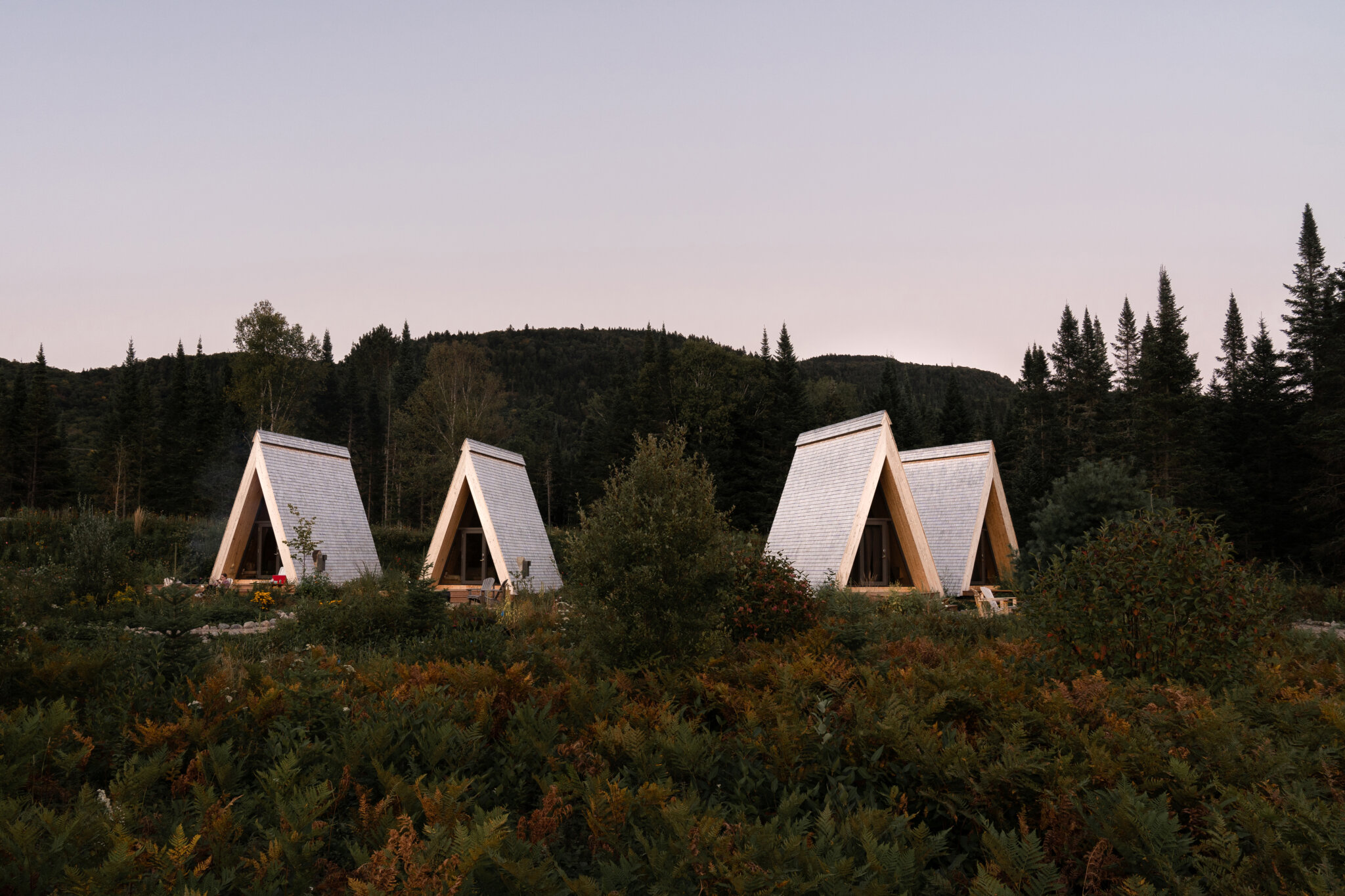 On a remote site of 100 acres in the Laurentians region of Quebec, the Farouche family-led agrotourism project is a unique hospitality concept in the wilderness offering minimalist lodging accommodation and sustainable farm-to-table dining in an isolated yet social setting.