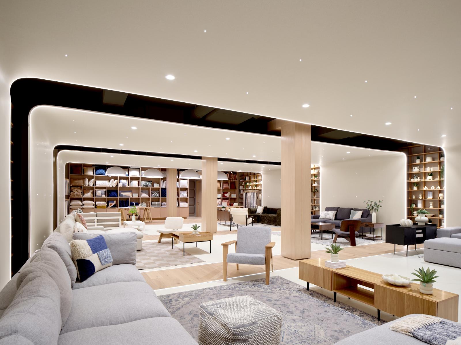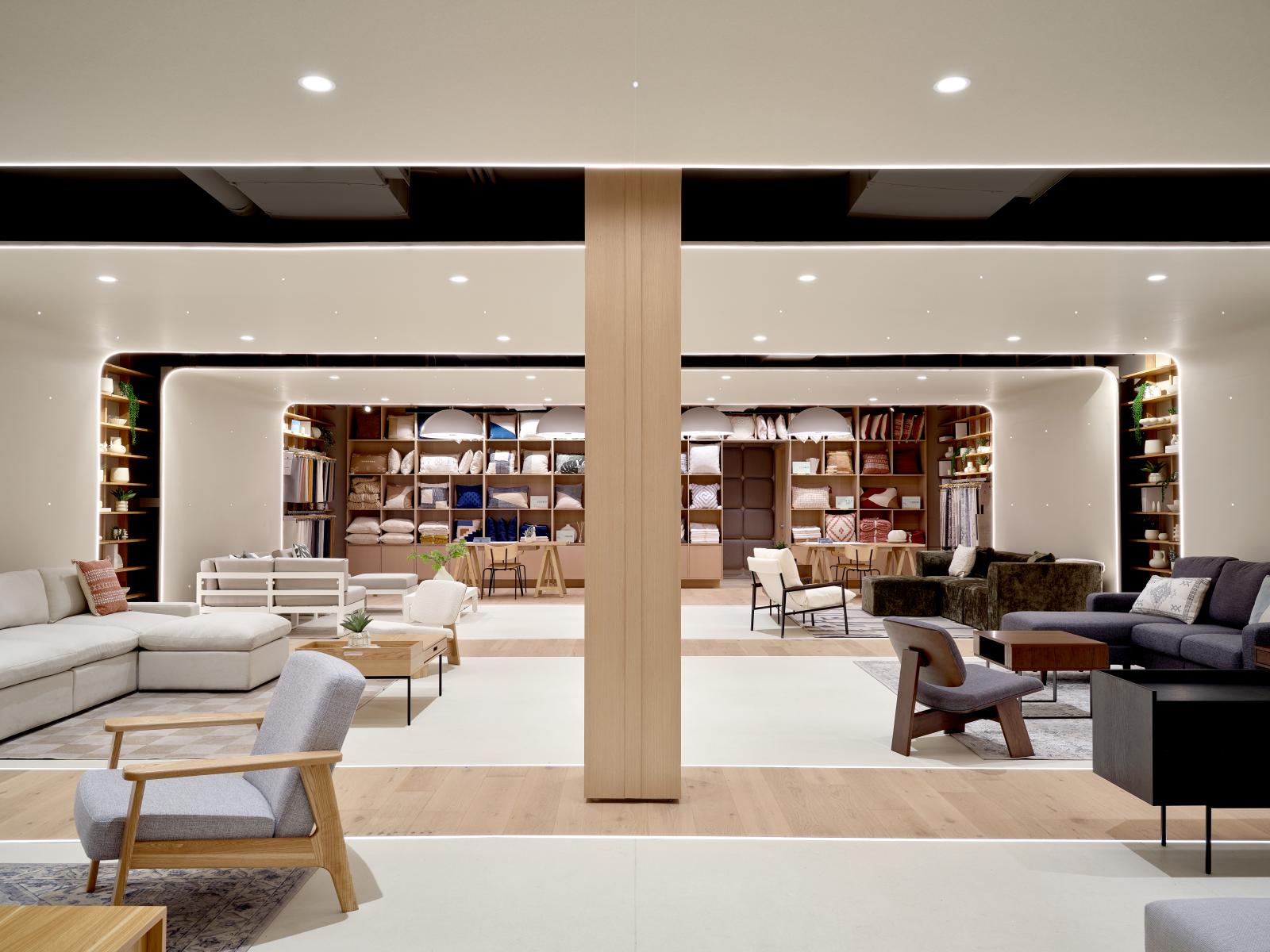 The workflow also integrated concurrent input from brand identity, website design and graphic design to seamlessly weave Cozey’s digital and physical realms in the space. The creative team’s mandate also included the built-in furniture design, from display platforms to shelving and design centre components, as well as the visual merchandising strategy for the furniture collections.