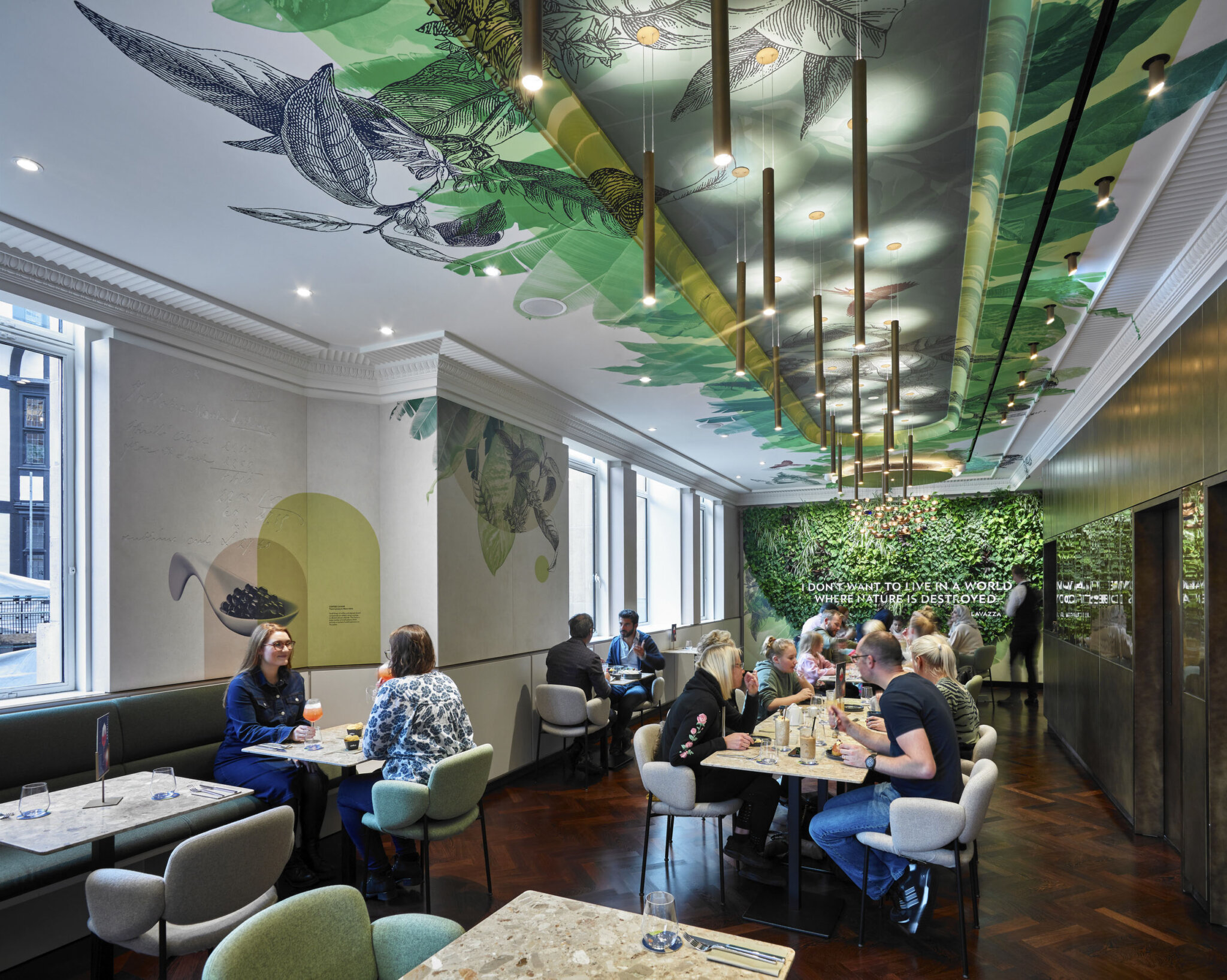 The project’s main objective was to bring Lavazza’s unique concept of coffee design, along with its distinctive Italian spirit, to a new London destination and audience. Located in the highly-trafficked shopping districts at Regent and Oxford Streets, the Lavazza Flagship Store needed to create an extraordinary experience for a wide range of customers: tourists, shoppers, commuters, and coffee aficionados alike. Our communication design is embedded throughout the fabric of the store. It has a playfulness that invites exploration and promotes a deeper understanding of Lavazza's impressive 120-year history. The brand’s dedication to sustainability and the environment is conveyed through real green planting that unfolds from the walls, culminating in the vertical garden on the First Floor.