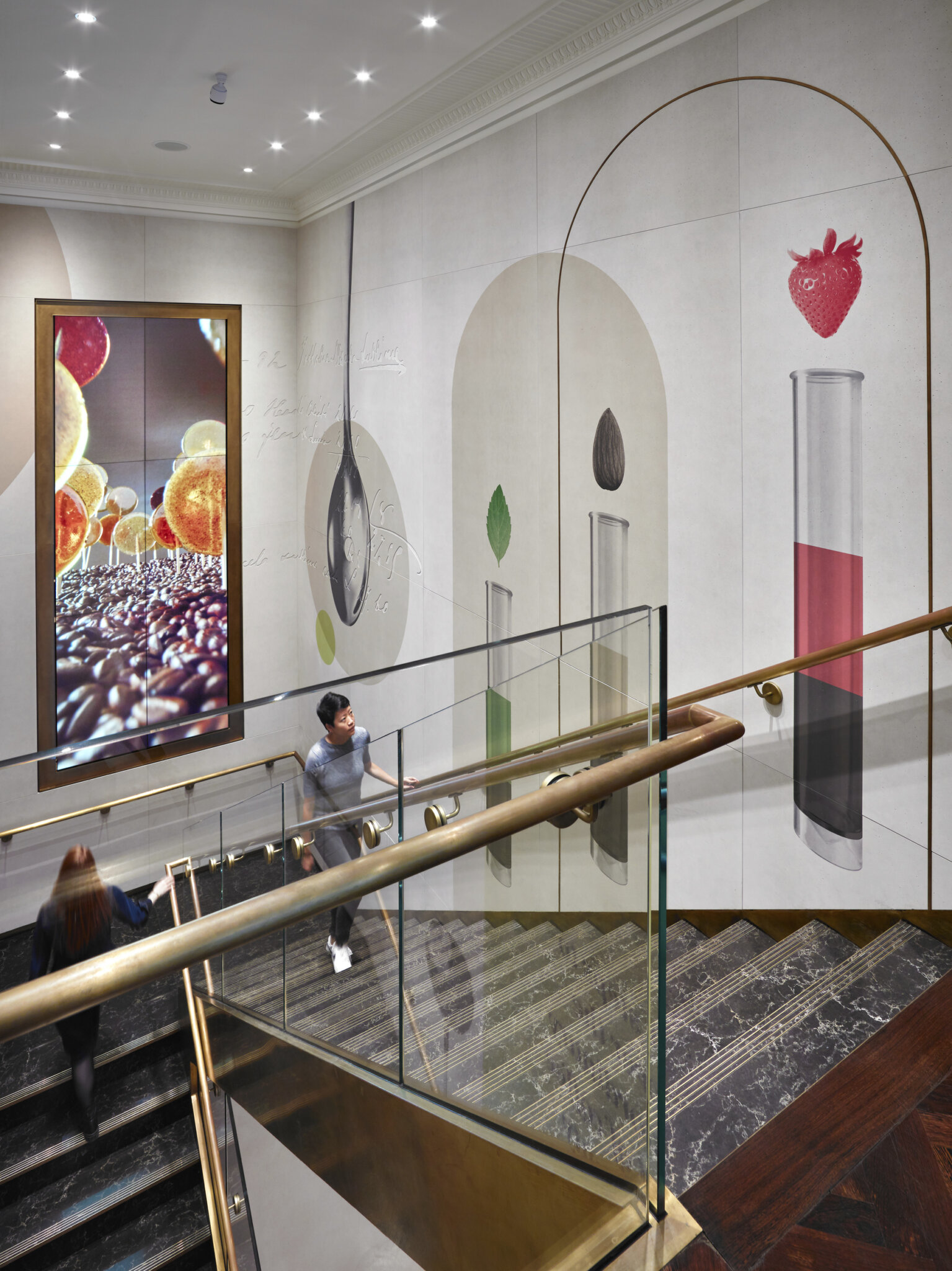Infused with the spirit of Italianità, the communication design approach drew inspiration from the blend of playfulness and rich heritage that underpins the Lavazza brand. Fresco-style murals on the walls vividly blend Lavazza’s iconic imagery, past and present, with dynamic illustrations. Individual, Italian-designed contemporary furniture across both main floors invites customers to relax and enjoy their coffee in style.