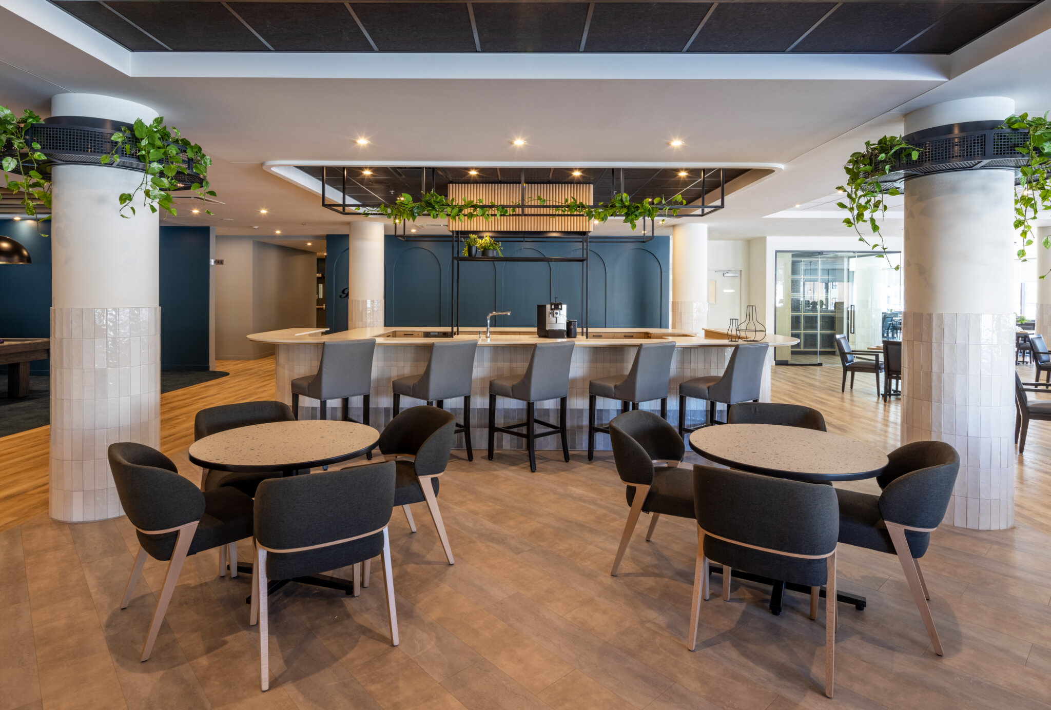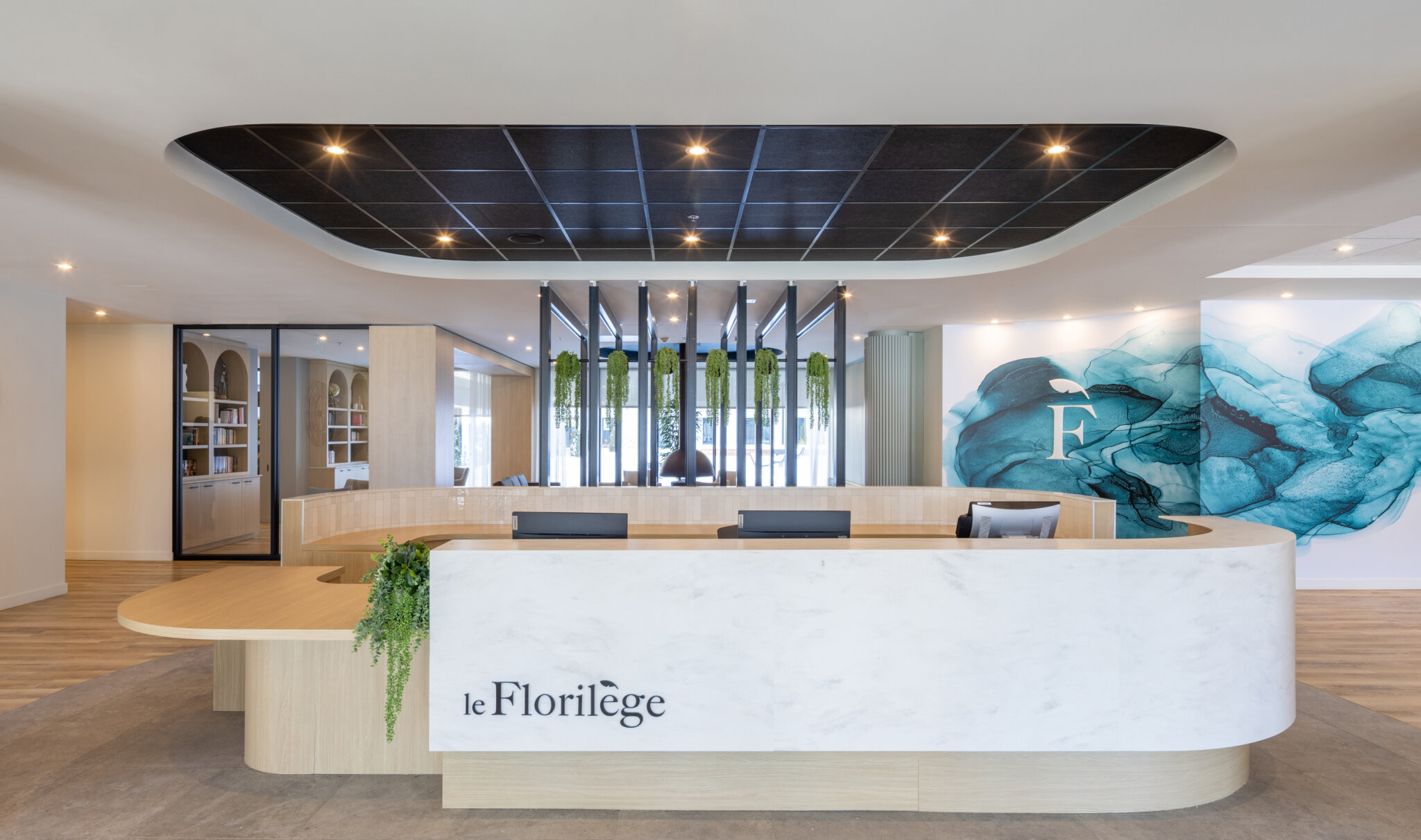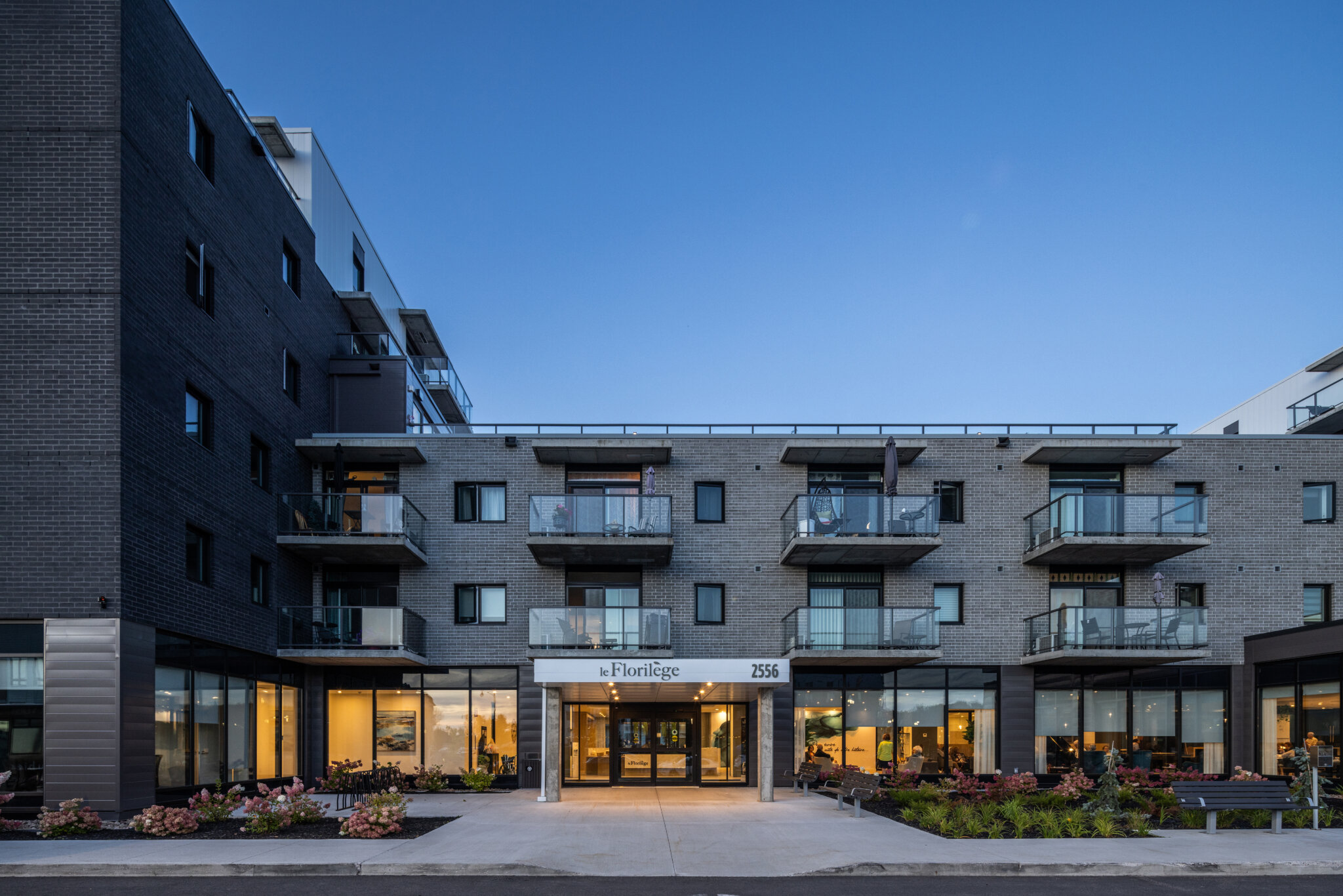 Le Florilège is a six-storey residential property for retirees, which includes 337 units–36 of which are care units designed to accommodate semi-autonomous residents. The building is divided into four volumes around a central courtyard. The occupants benefit from several common areas, including a swimming pool, a cinema, a terrace lounge and two interior courtyards. The care wing features common collaborative spaces, including a kitchen area and a large table for group activities, promoting dialogue and socialization. All apartments follow the through-building typology and offer various possibilities for personalization.
