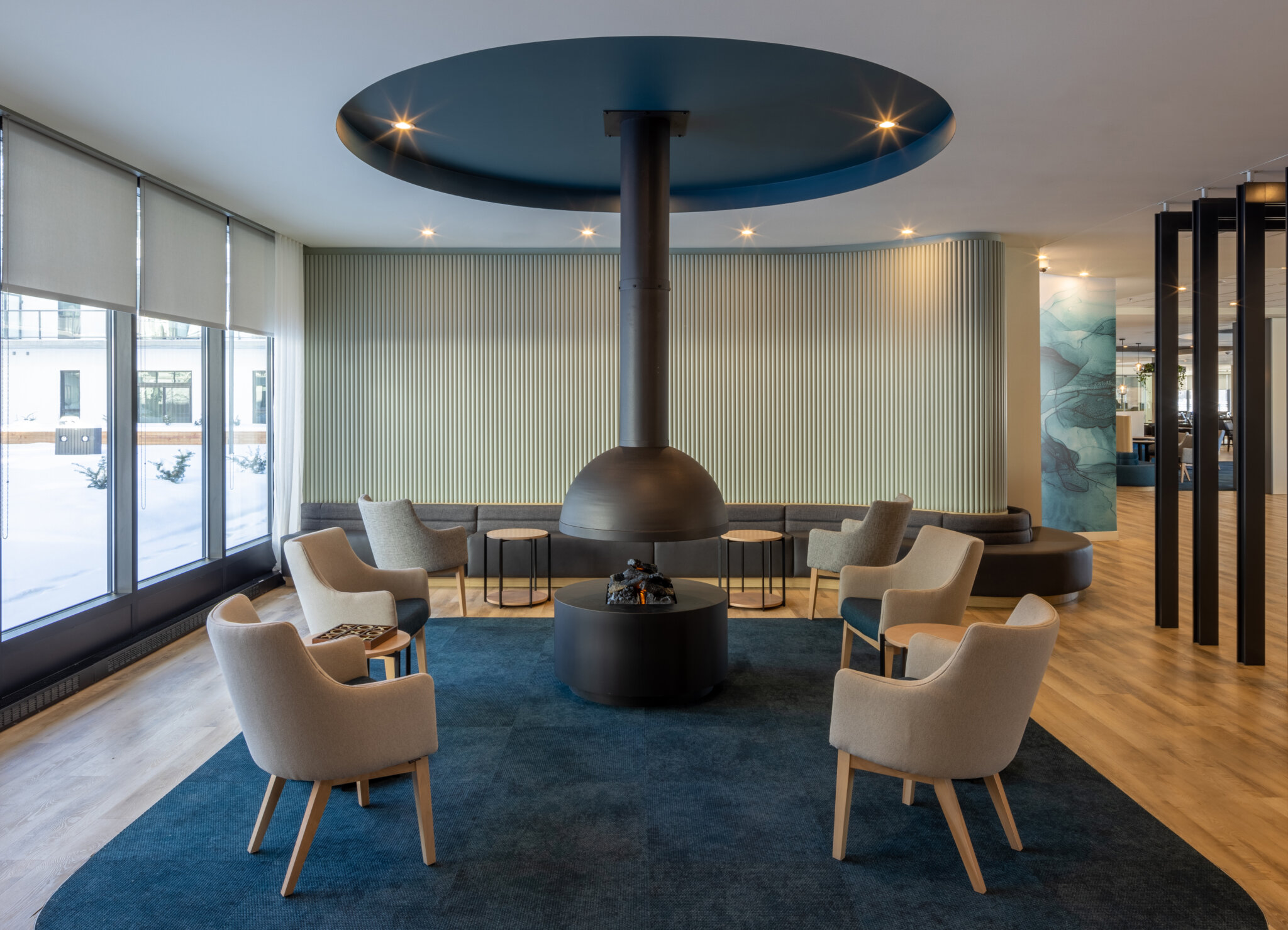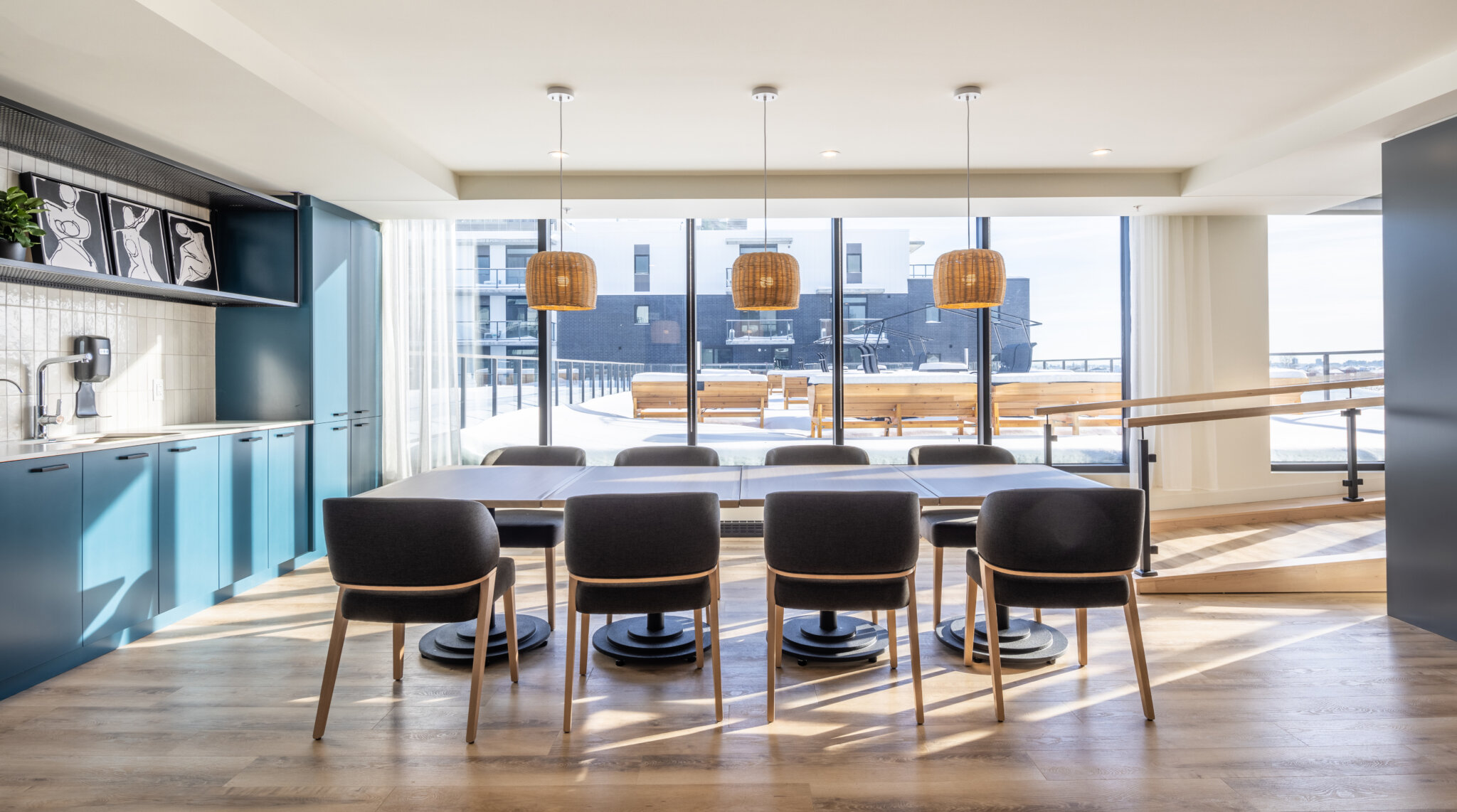 Design choices prioritize residents’ well-being, and facilitate several spatial innovations, especially within the outdoor amenities. The central courtyard, developed on a limited surface area, has been oriented to optimize space and natural light. Materials have been selected based on their refection index. A green roof terrace connects residents with nature through urban agriculture activities. Its location, two storeys lower than average amenities, protects the terrace from the wind. An outdoor dining area is set up along the public thoroughfare, in connection with the nearby park. Its design and openness to the street are inspired by restaurant terraces.