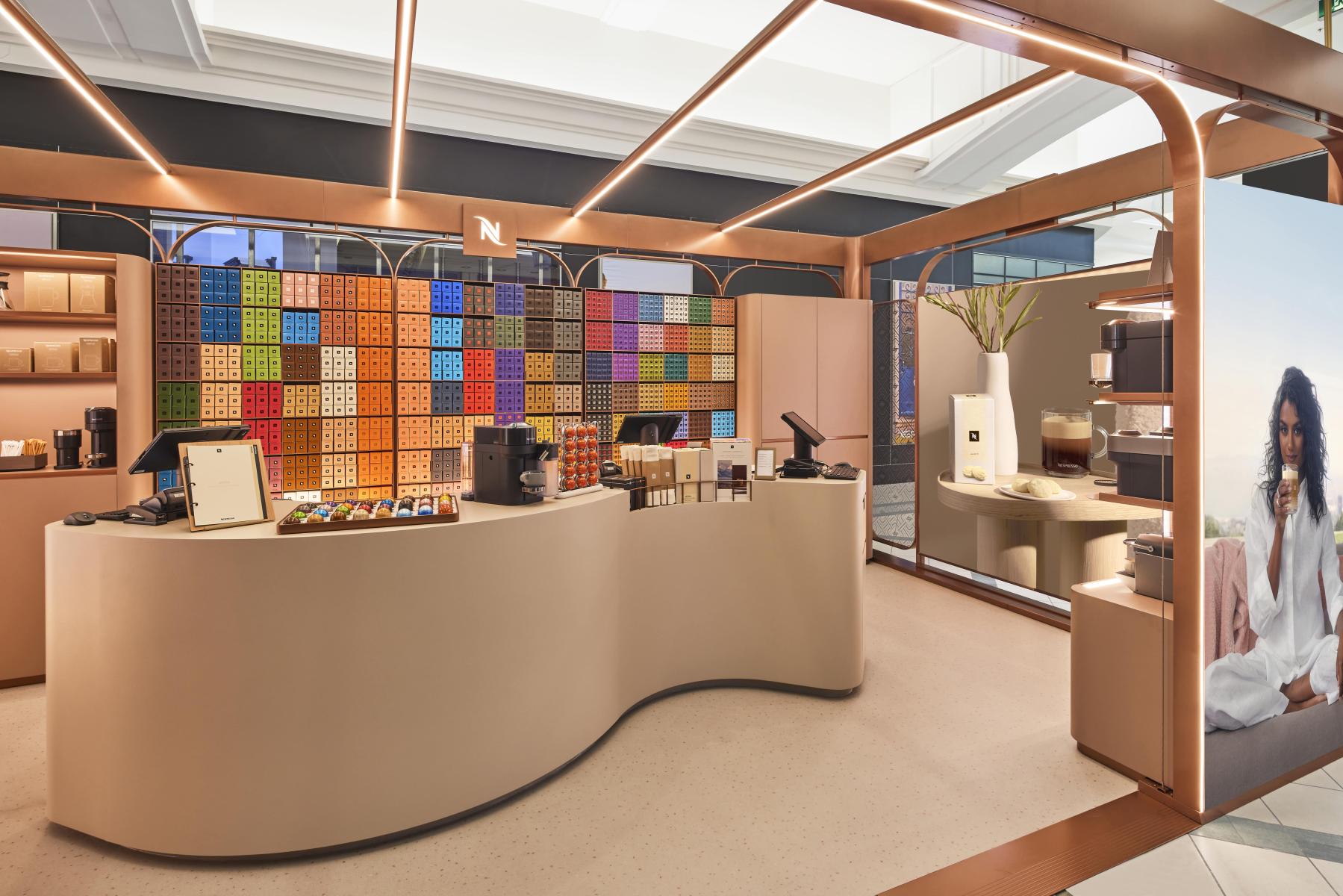 Overall, the final design seamlessly blends aesthetics with functionality and combines elegance with operational needs. Every architectural detail was meticulously developed to elevate the Nespresso brand and provide coffee lovers with a truly exceptional experience.