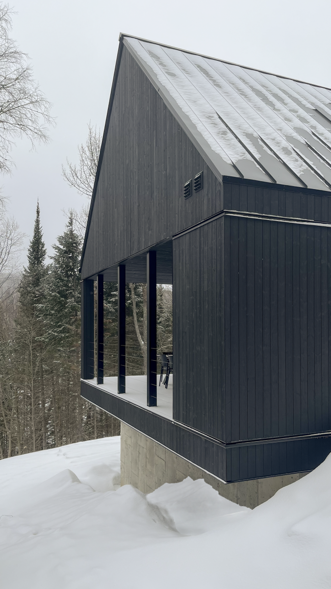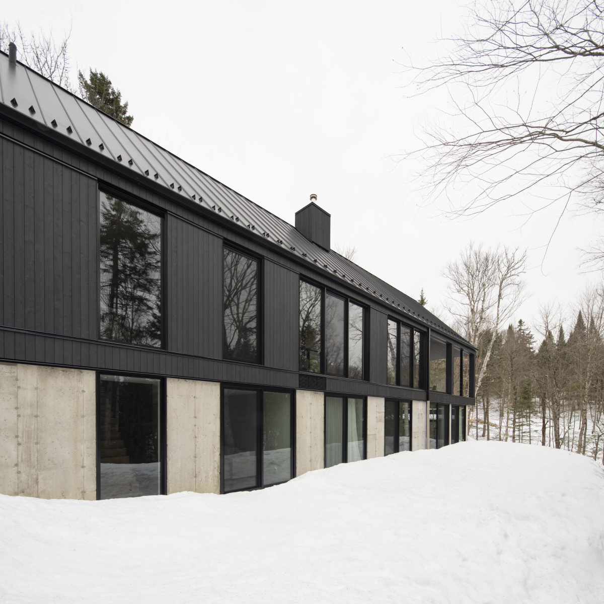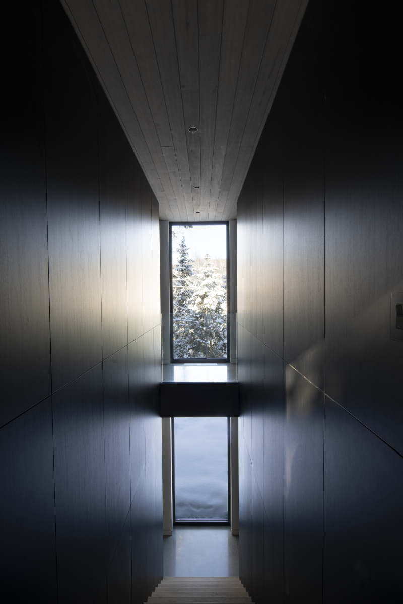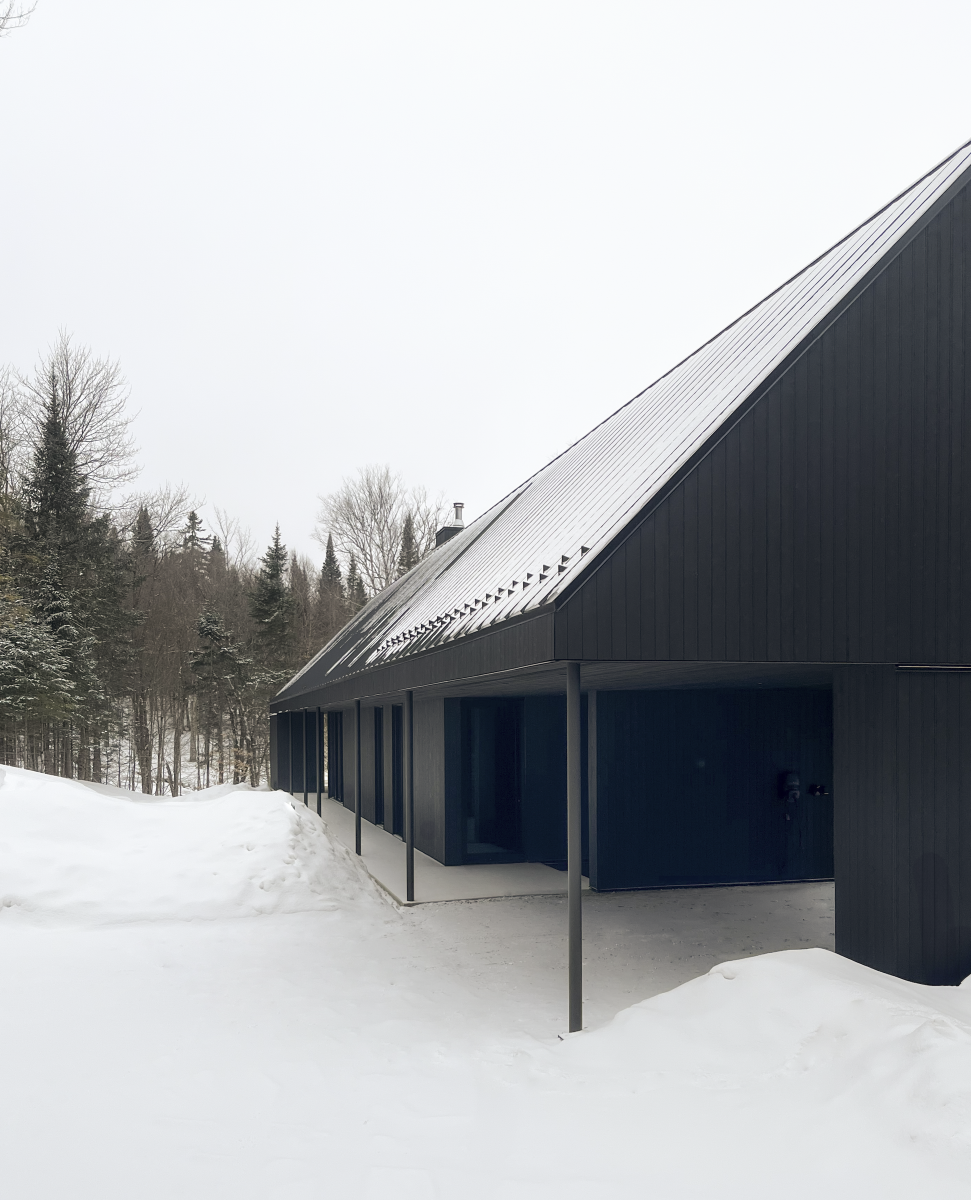 Located in the Laurentians, the residence creates a visual interplay between the landscape and the architecture.
