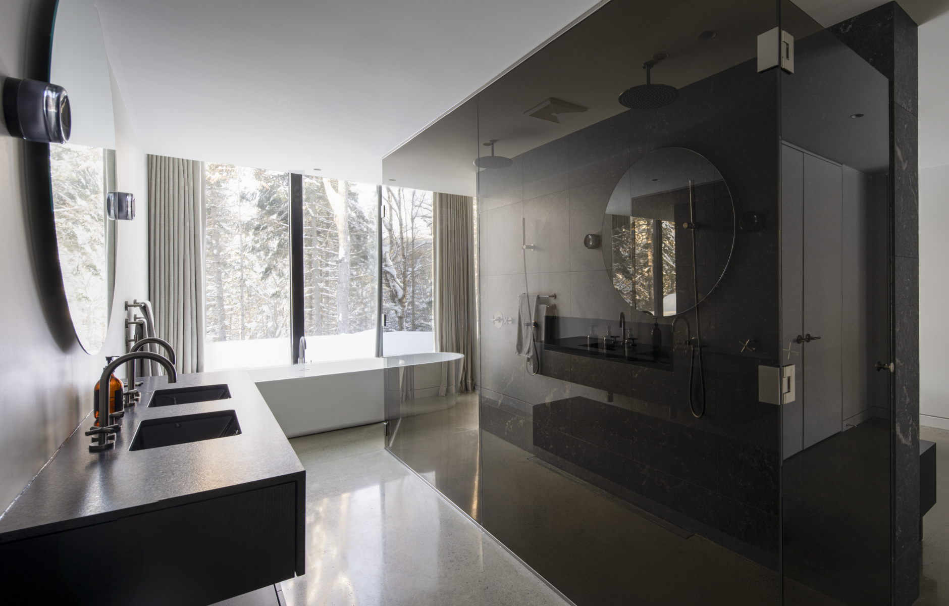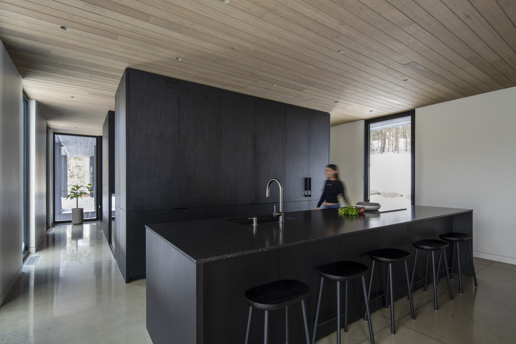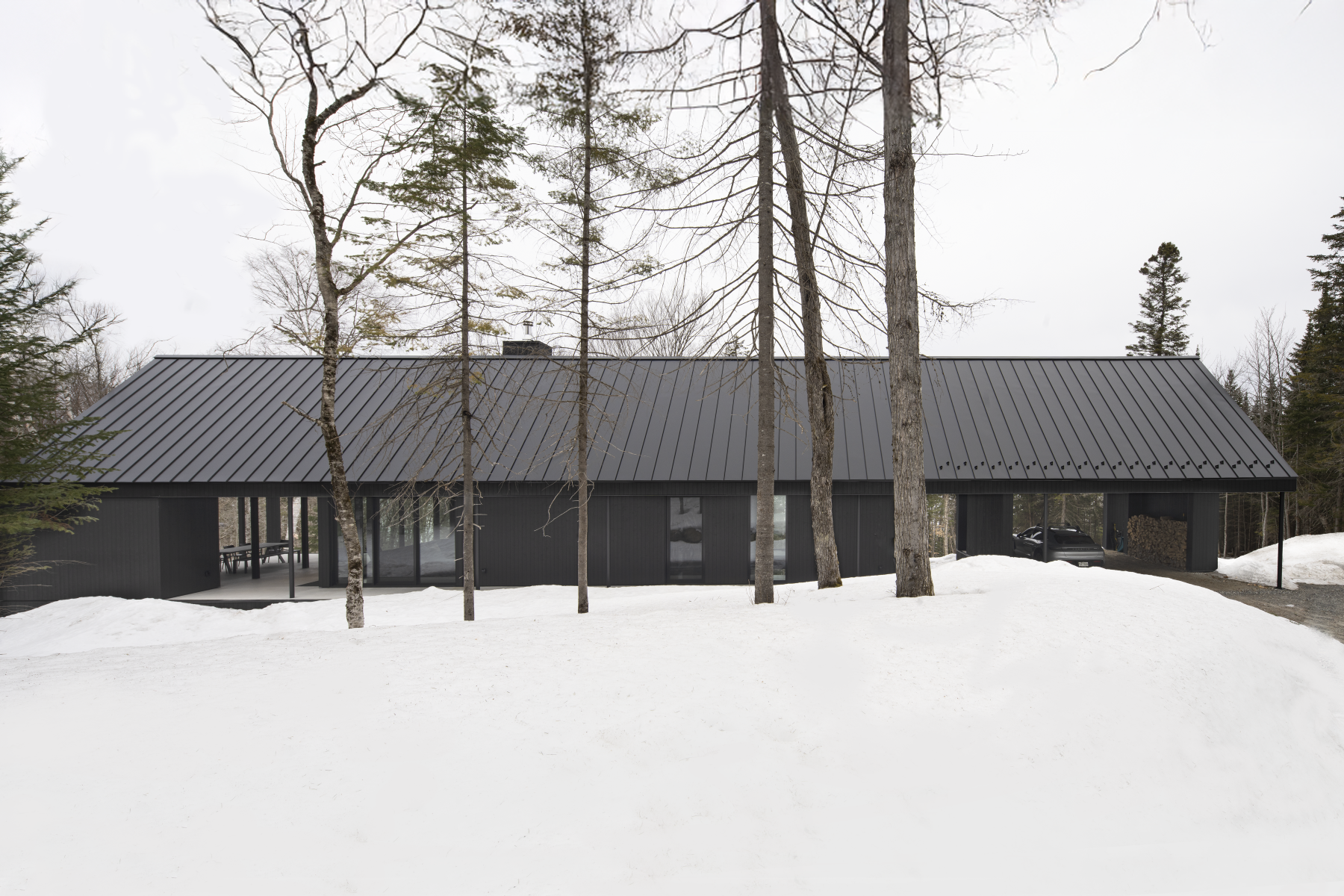 Located in the Laurentians, the residence creates a visual interplay between the landscape and the architecture.
