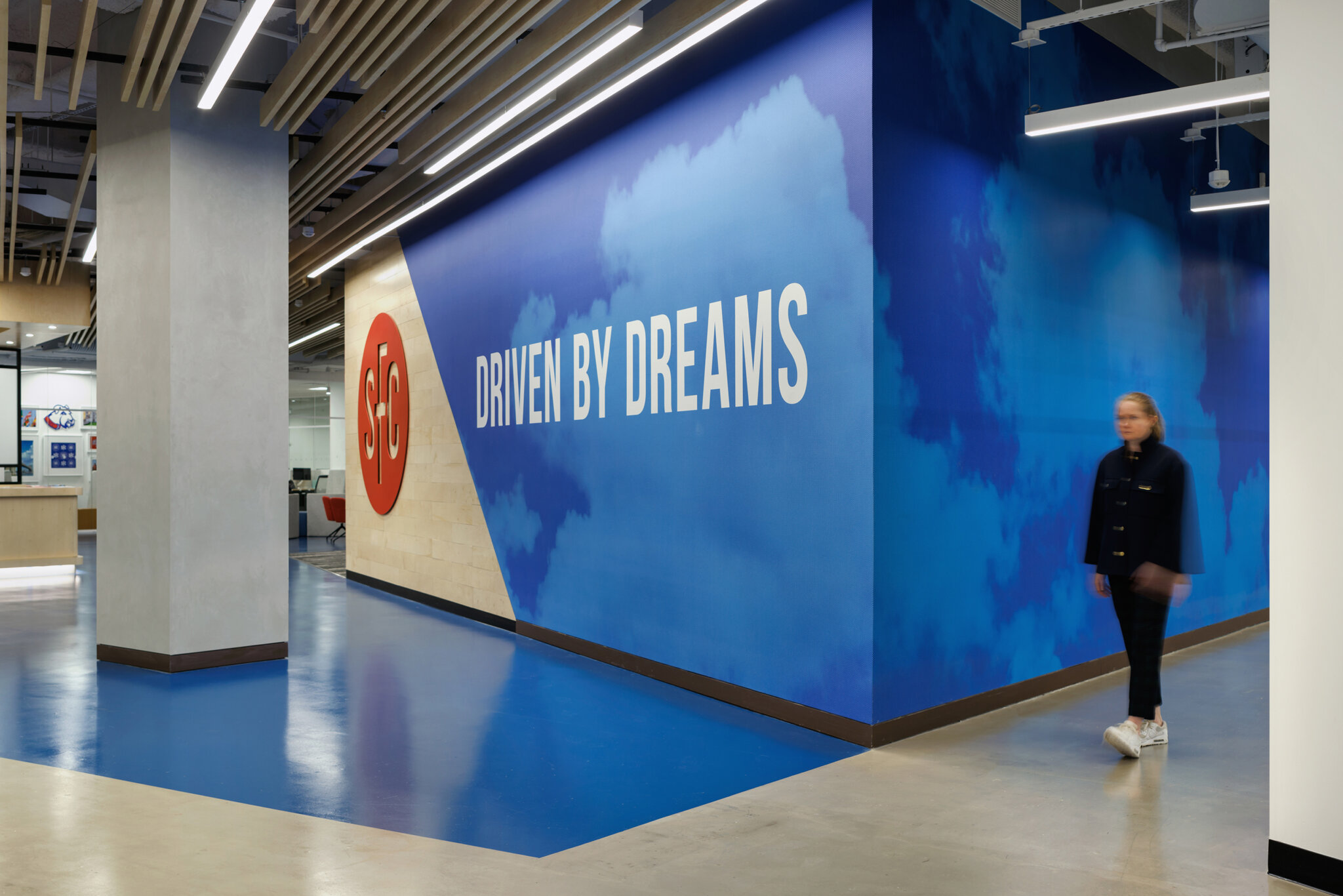 Their tagline “Driven by Dreams” appears on the welcome wall, reinforcing their commitment to finding a space solution that will best serve their students, faculty, and staff to achieve their goals.