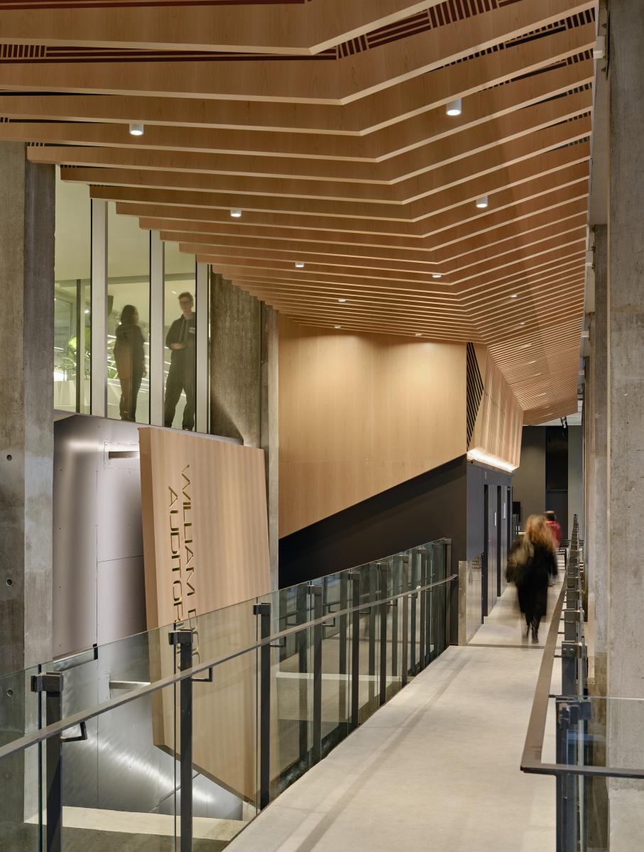 Technically, the project includes major building code and life safety upgrades; a seamless, all-level accessibility strategy; high-performance acoustic design; and AV integration for both theatrical and academic use. Lighting, designed in collaboration with Alula, subtly enhances the programmatic layering of each space. Sustainability goals were met through system upgrades aligned with U of T’s carbon reduction targets.