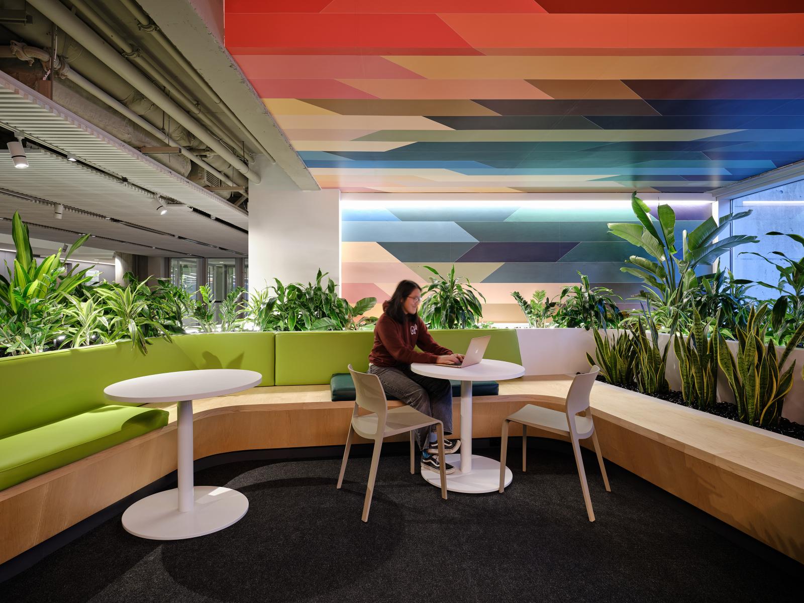 The process was deeply collaborative: developed in consultation with students, administrators, facilities staff, and U of T’s Office of Indigenous Initiatives, who helped integrate a dedicated smudging room into the design. The result is a vibrant, technically resolved, future-facing interior that elevates the experience of daily life at New College—creating space for connection, creativity, and community.