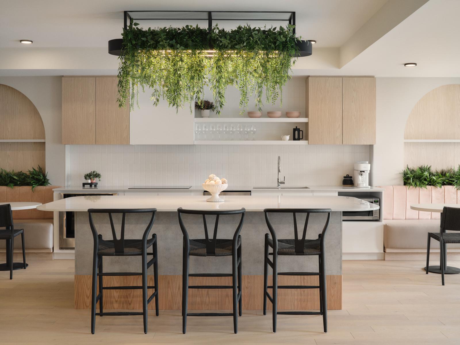 The entire approach is guided by a strong biophilic philosophy. Soft-toned vinyl floors, full-height cabinetry with waterfall detailing, filtered natural light, and abundant vegetation all support a lifestyle that is healthy, balanced, and closely connected to nature. These elements help foster a calming environment that is both functional and aesthetically pleasing.