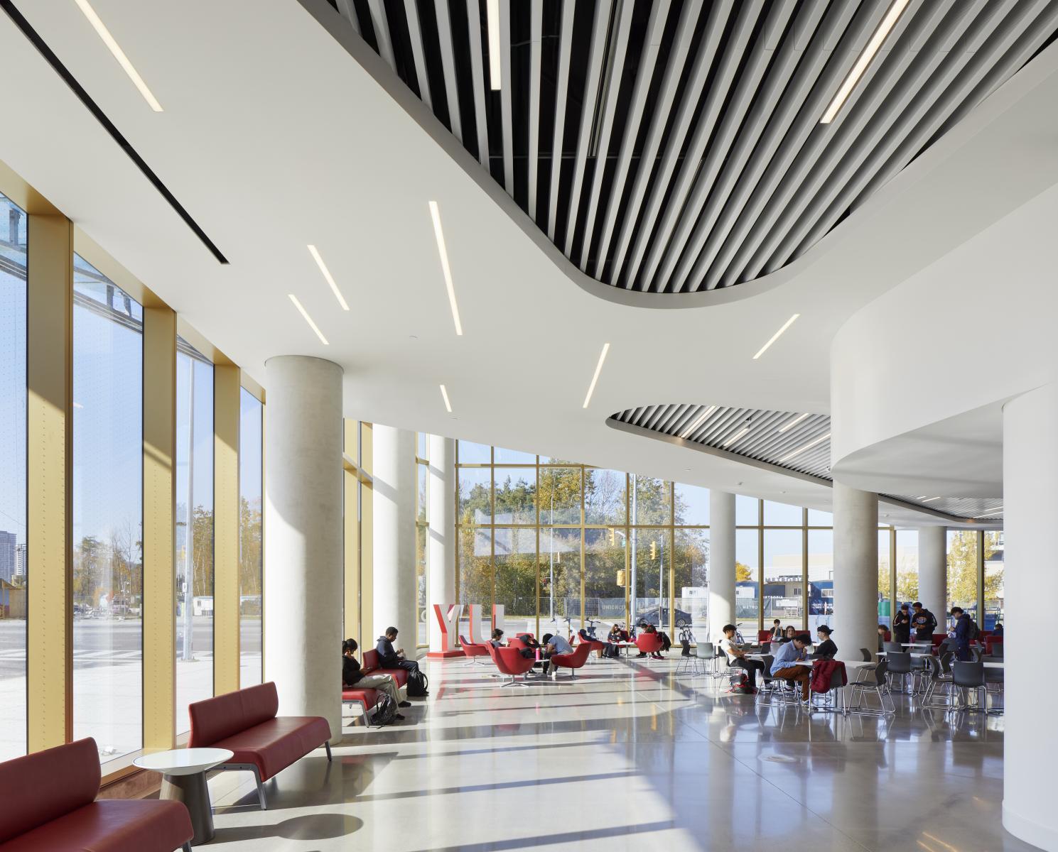 As the first university campus in the City of Markham, a Toronto suburb, York University’s new campus building innovates by challenging the traditional academic building typology and defining a collegial academic community within a vertically integrated 10-storey academic campus. The vertical campus optimizes the compact site and creates a new post-secondary academic presence northeast of Toronto—serving as a catalyst for future growth in the region.
