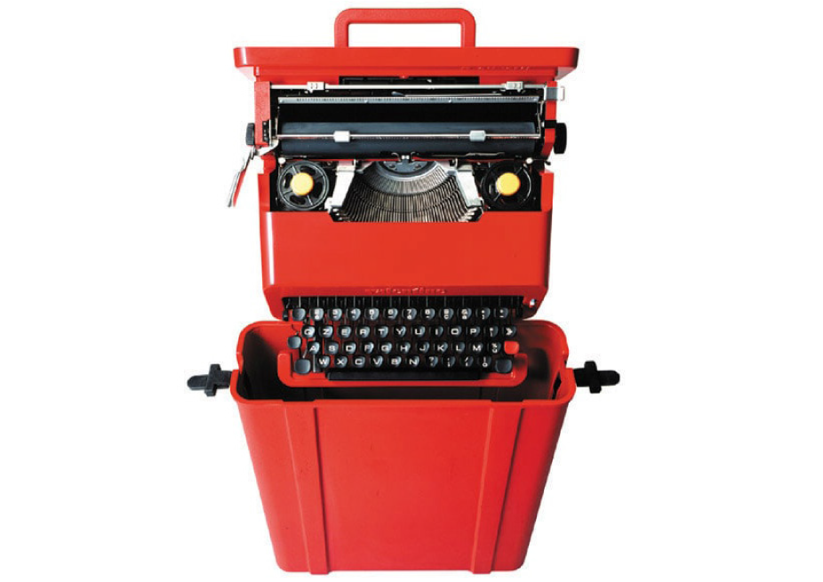 Conçue et dessinée par Sottsass en 1969, la machine à écrire portable Valentine (Valentine la Rouge) a bénéficié de quelques coups de crayons de Leclerc !