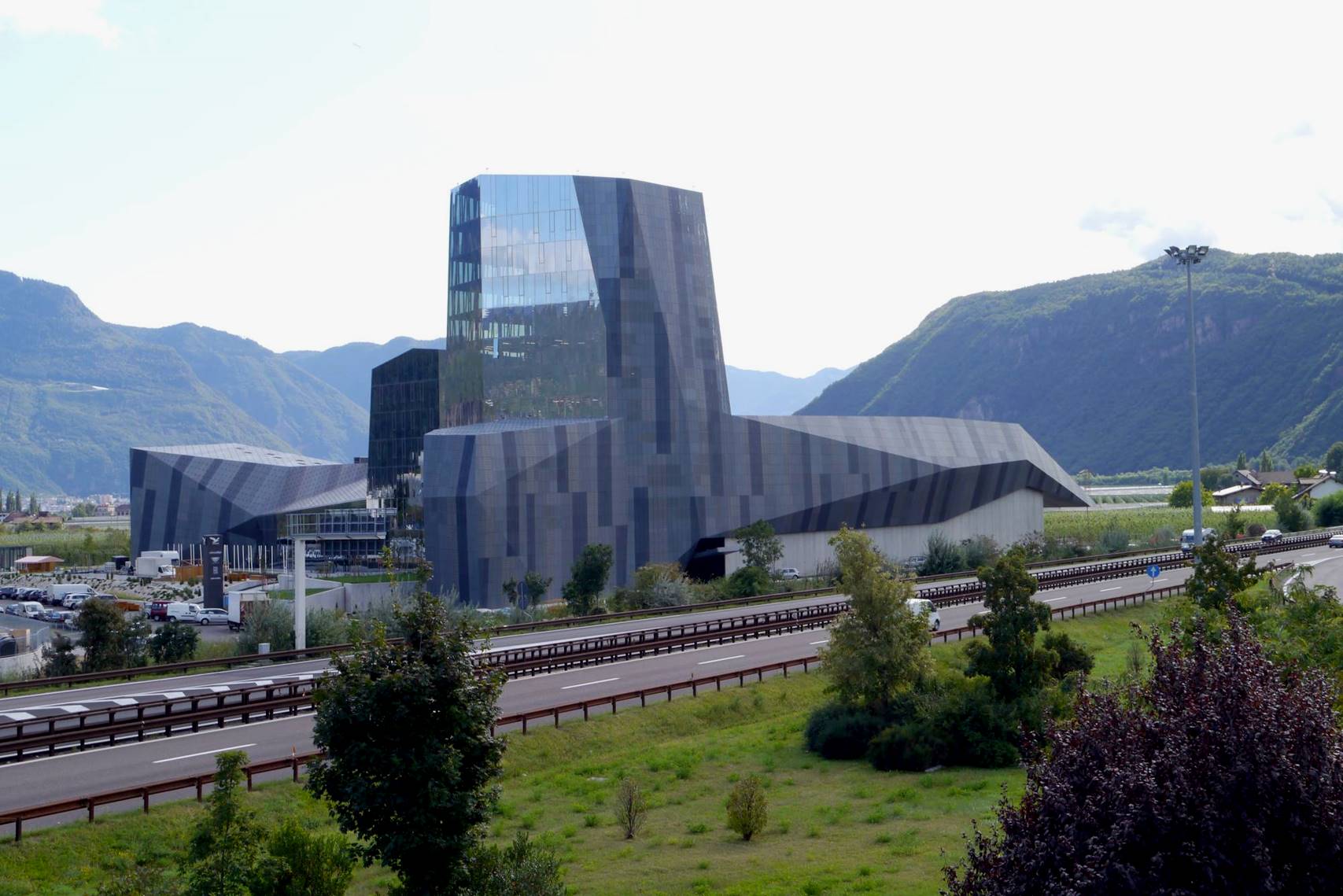 Le siège d’une entreprise de vêtements techniques pour grimpeurs accueille les bureaux, l’entrepôt principal, une salle d’escalade, un magasin d’usine, une cafétéria et un espace événementiel. Ses volumes extérieurs deviennent un repère de l’autoroute et se rapportent à la chaîne de montagnes entourant Bozen.