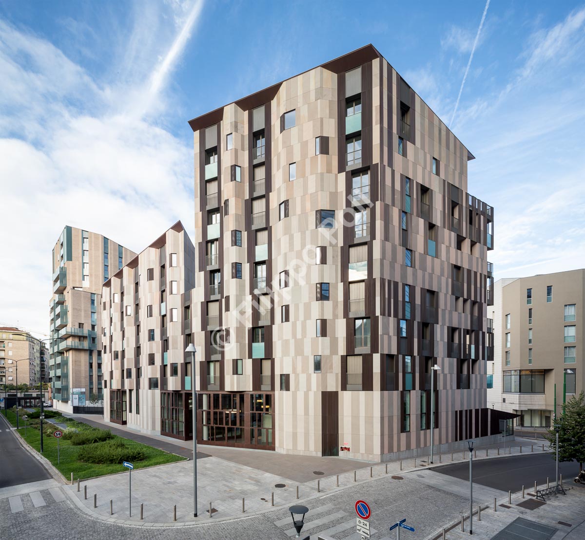 Un immeuble résidentiel double face dans le nouveau quartier de Porta Nuova.