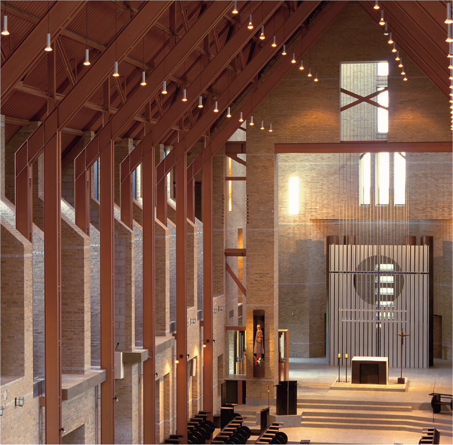 Réalisation tour de force, car l’église abbatiale de tous les édifices du monastère est celui qui est le plus fidèle reflet de l’ordre monacal. Véritable «atelier monastique», l’église abbatiale dessinée par Hanganu est forte, lumineuse, intemporelle et identifiée à l’extérieur par une tour abritant les cloches qui appellent les moines pour les huit offices quotidiens. Elle est superbe.
