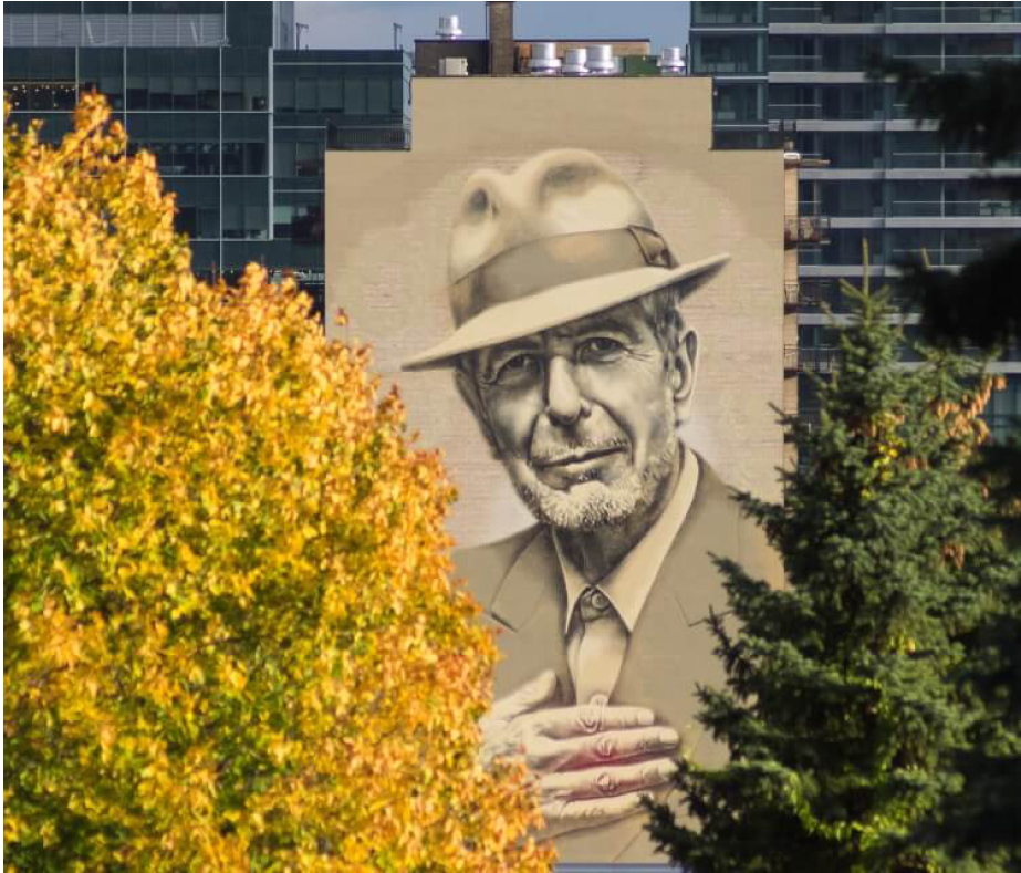 La 100e murale de l’organisme, inaugurée dix ans plus tard, en 2017, est déjà devenue une emblème de la métropole et de sa “Main”. Dévoilée le jour du premier anniversaire de la mort de Leonard Cohen, la murale réalisée par les artistes El Mac et Gene Pendon et une équipe de 13 artistes assistants rend hommage au poète montréalais, amoureux de sa métropole.