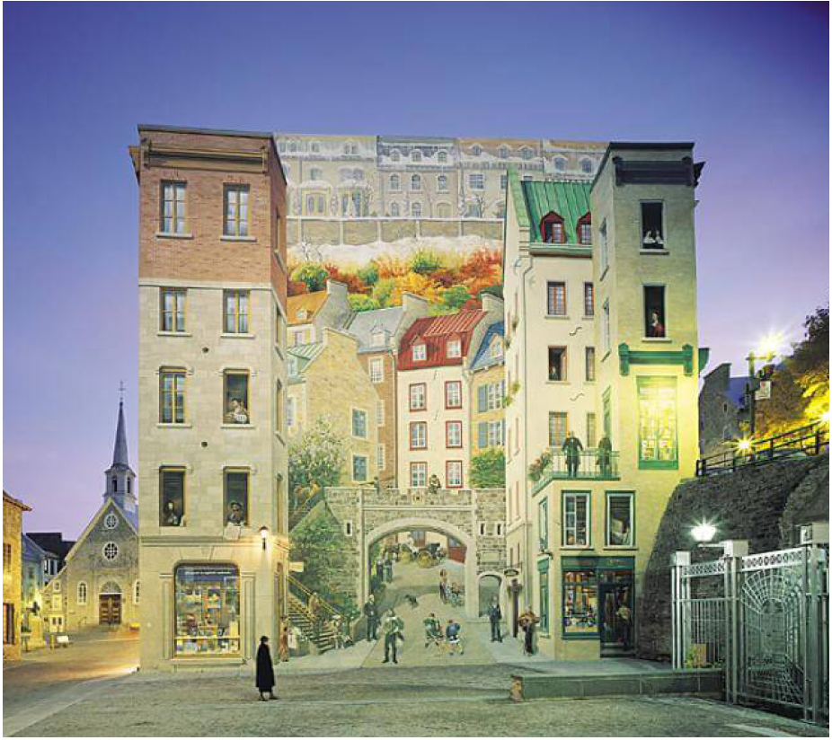 De Lyon à Marseille, de Shanghai à Québec, l’Atelier Cité Création a su raconter des récits à coup de pinceau sur la pierre. À l’occasion du 400e anniversaire de la fondation de la ville de Québec, le groupe a réalisé un design mural monumental, la Fresque murale des Québécois, au cœur de la vieille ville.