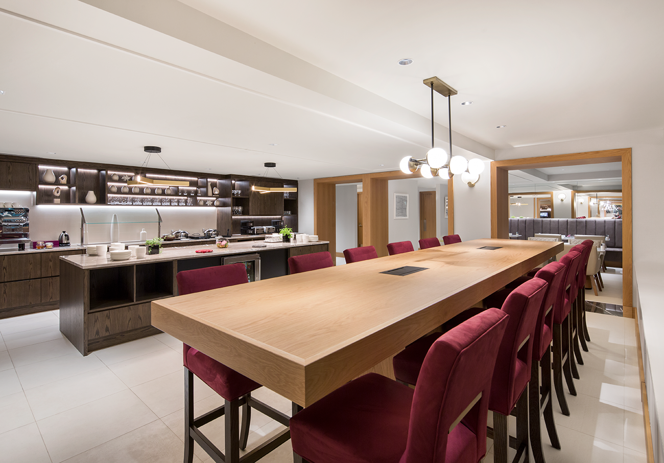 Les espaces reçoivent donc un traitement en conséquence. Le grand corridor central est aménagé comme un salon, avec fauteuils et œuvres d’art, et plusieurs zones ont été créées pour prendre son temps ou se laisser aller au plaisir des rencontres informelles.