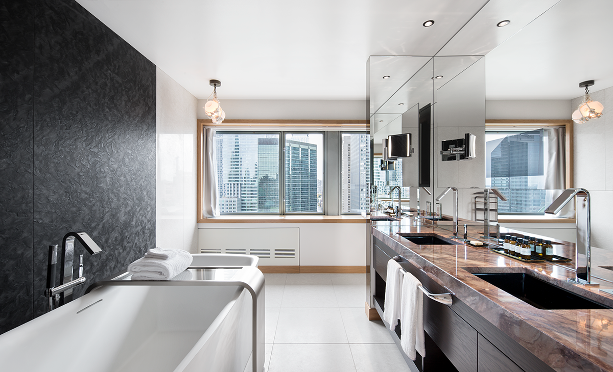 À ce titre, l’hôtel a dû relever un triple dé de se distinguer en répondant aux besoins actuels de la clientèle d’affaires tout en exprimant de manière originale son appartenance montréalaise et en respectant l’identité très claire de l’exploitant Fairmont.