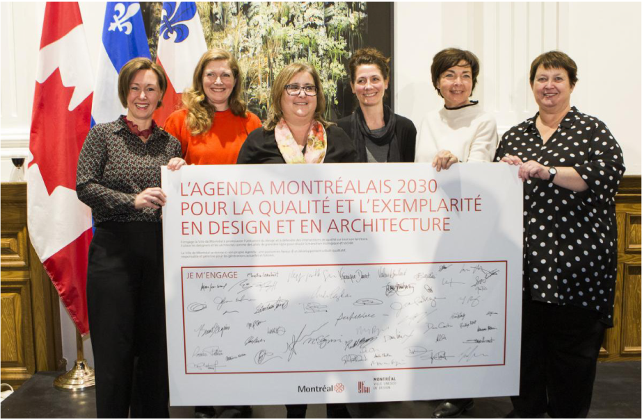 Tu tiens ta parole Marie-Josée et tu ne déçois pas ta ville ! À titre de cheffe d’équipe du Bureau du design, elle voit présentement à la mise en œuvre de l’Agenda montréalais 2030 pour la qualité et l’exemplarité en design et en architecture, une première politique municipale adoptée en décembre 2019, qui vise l’intégration stratégique et transversale de processus de qualité en design dans l’ensemble des pratiques municipales.