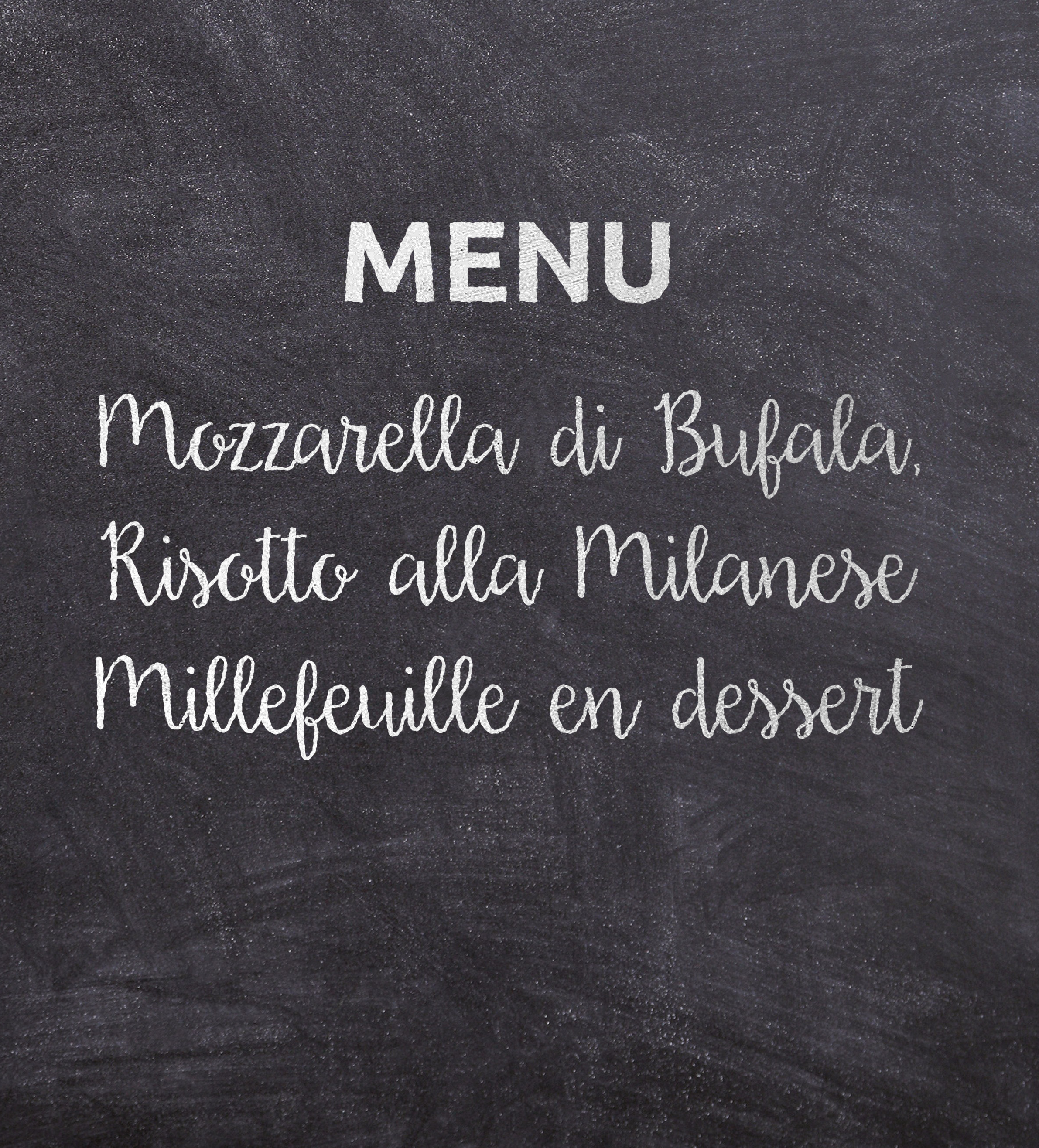 Je servirais la Mozzarella di Bufala, le Risotto à la milanaise et le millefeuille pour le dessert.