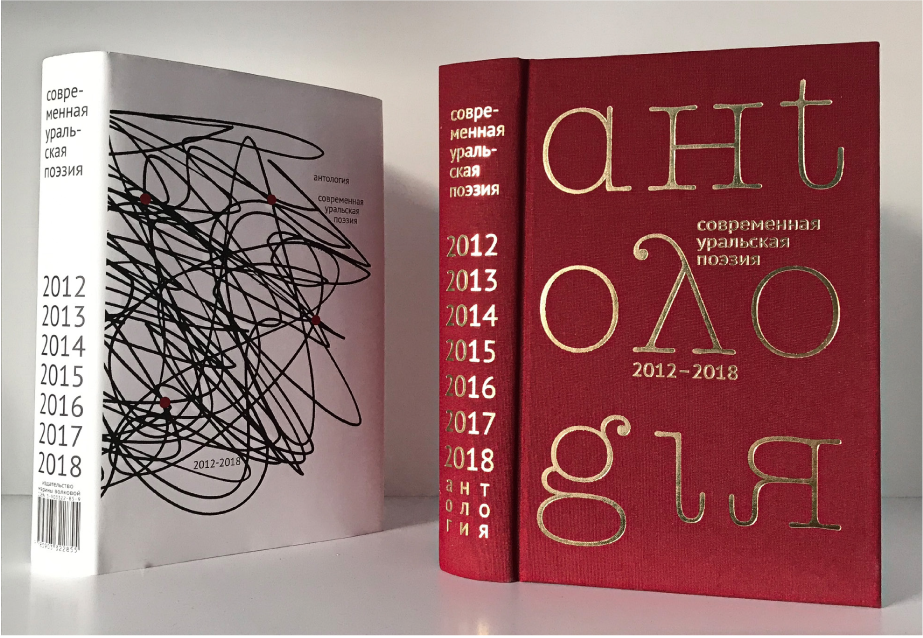Couverture et jaquette pour «Anthologie de la poésie contemporaine de l’Oural», Tcheliabinsk, Russie, 2018. Crédit photo : Pavel Pisklakov.