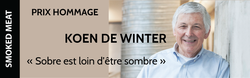 En 2005, son pays de naissance a reconnu sa carrière avec sa plus haute distinction pour le design, le prix Henry Van De Velde. Puis, qu’au Québec, Koen De Winter reçoit aujourd’hui le prestigieux prix Hommage du GRANDS PRIX DU DESIGN de la 9e édition en 2016.