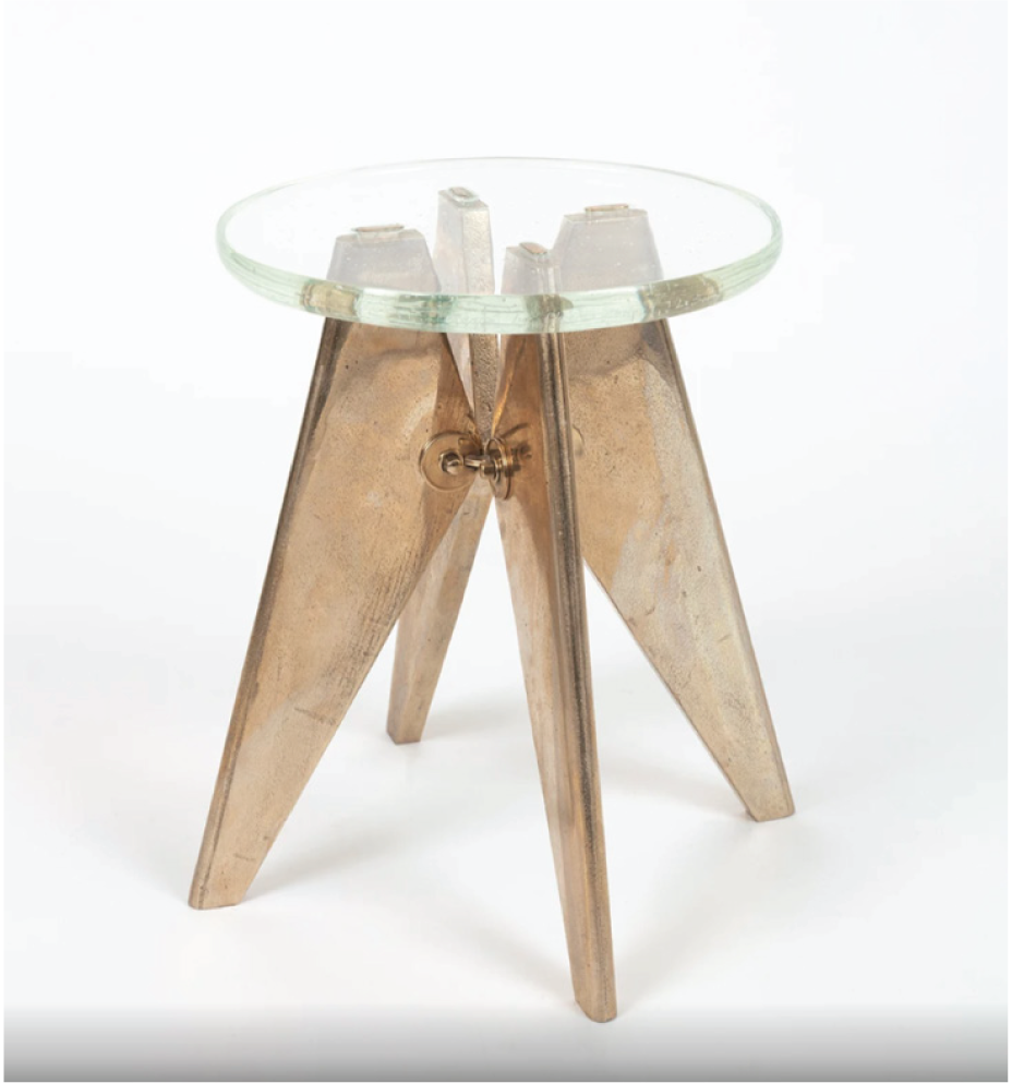 Immergé sous la glace, élancé vers le ciel, c’est la vision que Charles Zana a eu en redécouvrant le tabouret Solvay. La lumière traverse le plateau de verre coulé et se joue des reflets sur les pieds en bronze patinés. Baptisé Clarté, en hommage au travail de la lumière chez Jean Prouvé, il est né des mains expertes des artisans bronziers et verriers et de la passion de Charles Zana pour ces matières brutes et raffinées.