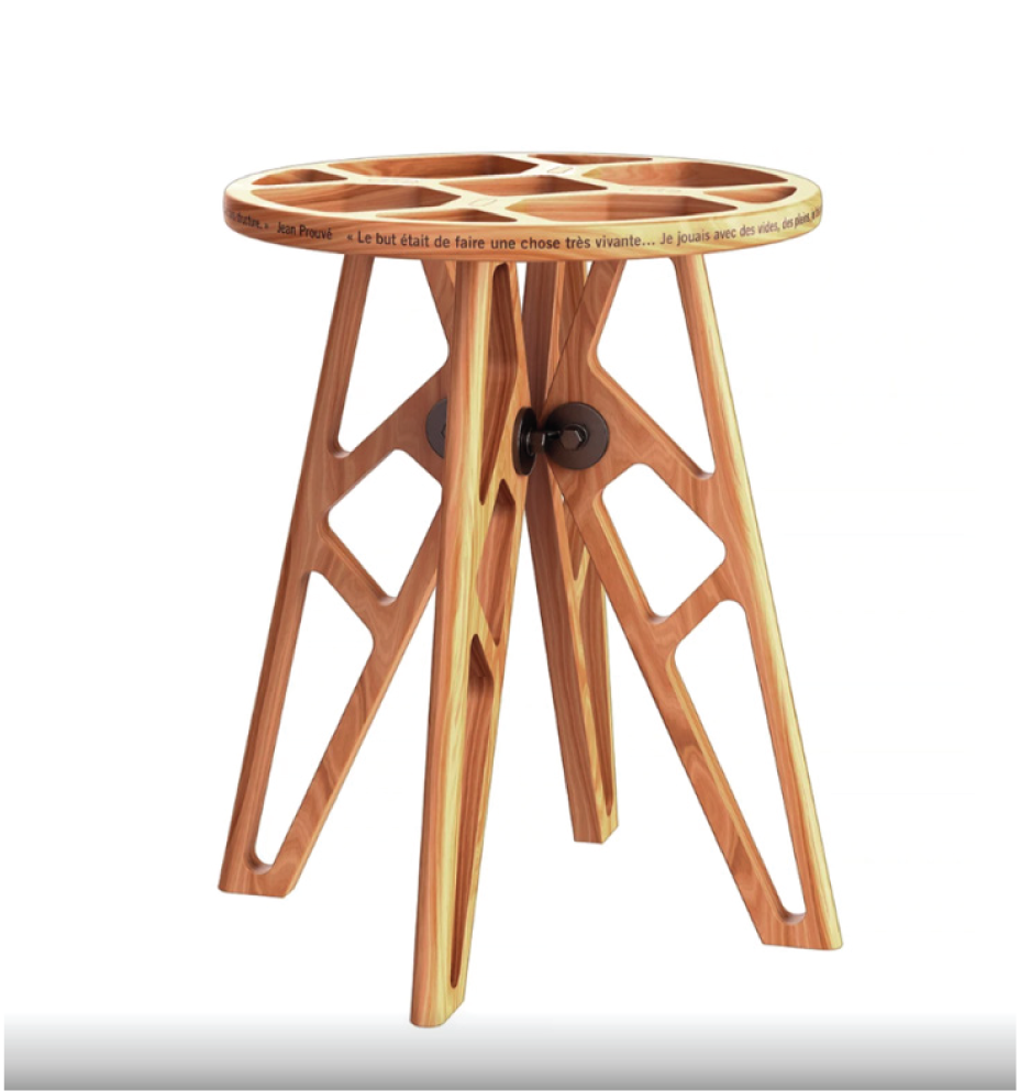Et Jean Prouvé dit: «… Le but était de faire une chose très vivante… Je … avec des vides, des pleins, je faisais un tableau… Dans mon esprit, il fallait qu’une chaise soit légère … Ce n’est pas la forme qui fait la belle chose, c’est sa contexture… Pour moi, il n’y a pas d’architecture sans structure…» Et l’intelligence vint aux chaises et même aux tabourets !