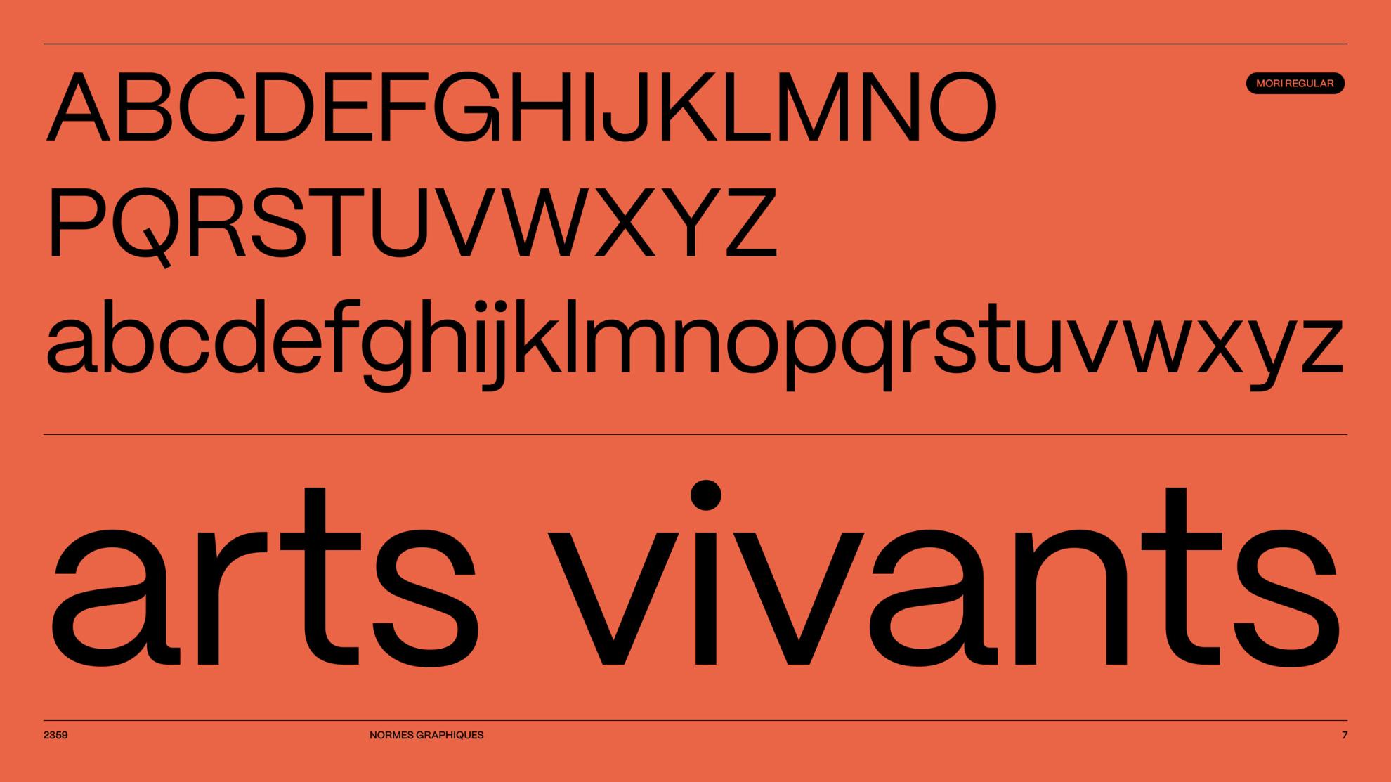 Créé avec la typographie Mori de Pangram Pangram, le logo évoque les connexions, celles des formes, des arts et des idées, tout en illustrant le temps qui s’écoule par la forme d’un sablier.