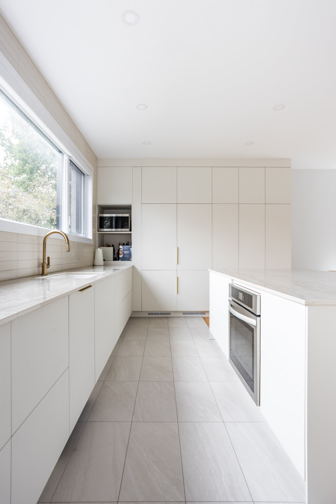 A and K’s house burned down in a fire following an electrical short in the shed. Safe and sound, the family wanted to rebuild the house to live in a space that would bring them together for the next 20 years and welcome their extended family. The challenge of the project was to rebuild a home of their dreams, whose spaces, lines, views and materials would enable the family to live happily every day. The customers wanted a peaceful, calm and elegant atmosphere.