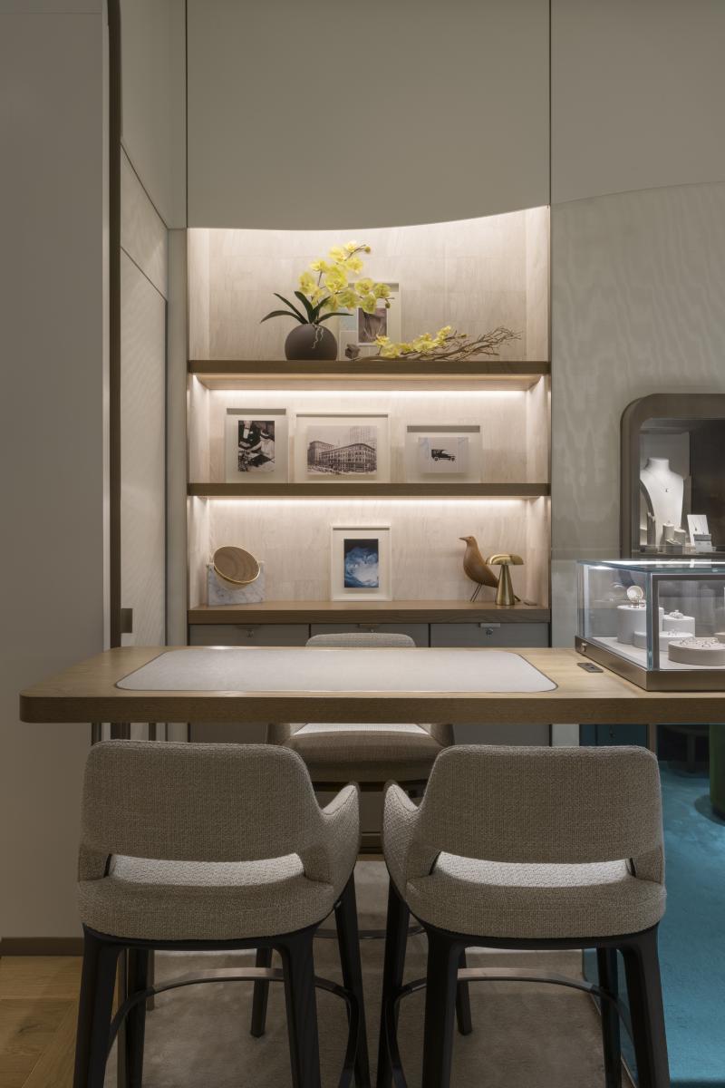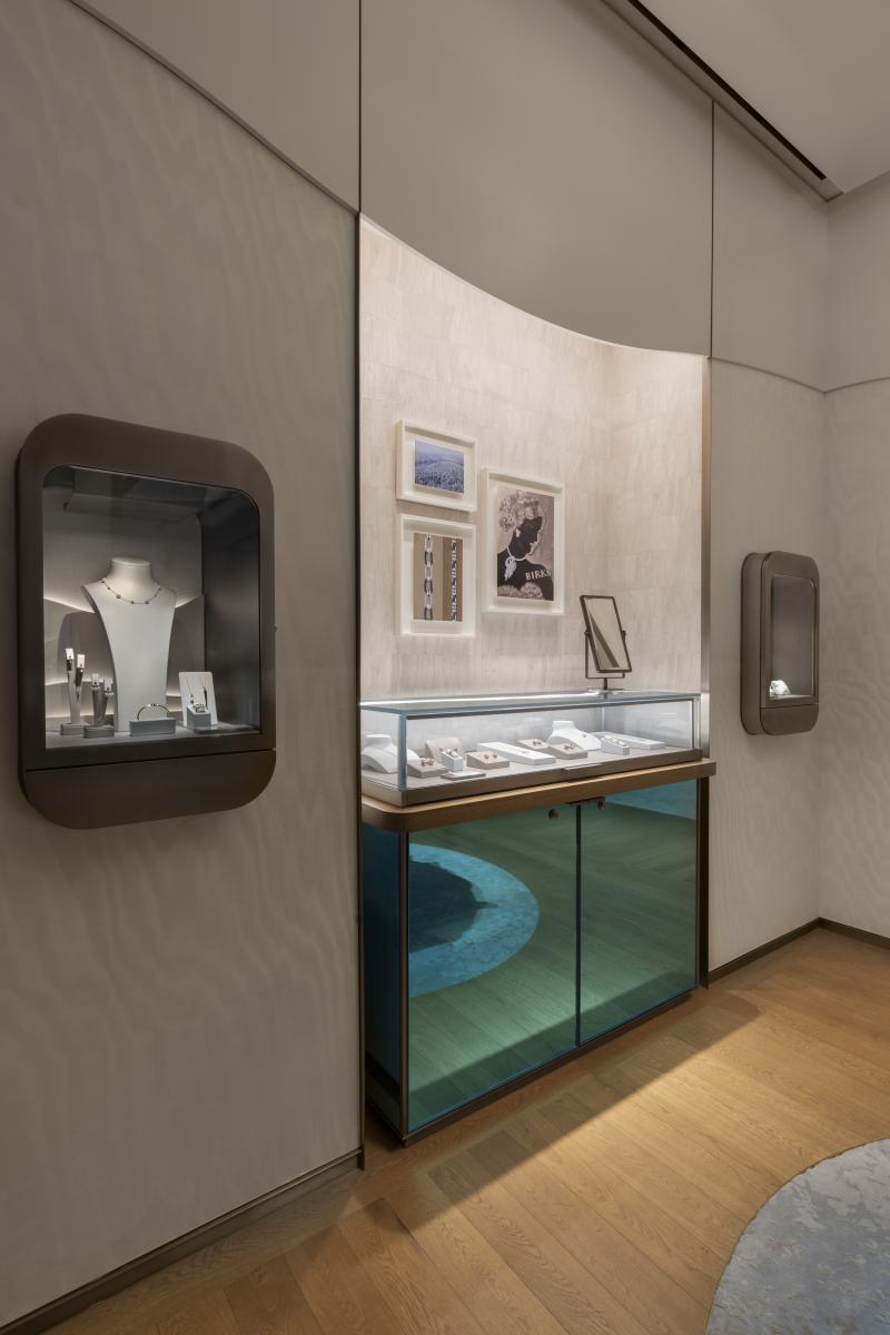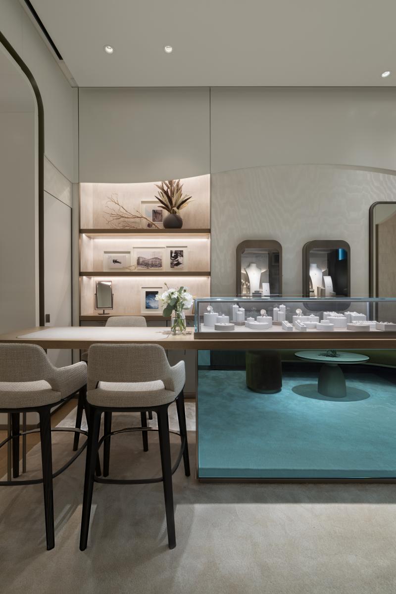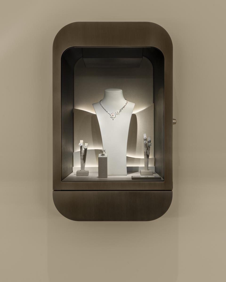 De plus, le magasin Birks ne présenterait que des bijoux, car les montres seraient toutes dans la boutique Time Valley. Conceptuellement, cela a permis à l’équipe de se déplacer vers un territoire entièrement différent pour l’environnement de la marque Birks : un territoire plus axé sur les collections de bijoux de base de Birks, sans être entravé par les autres marques, et articulant un design de magasin non seulement adapté aux attributs clés de Birks, mais aussi ciblé pour une clientèle féminine.
