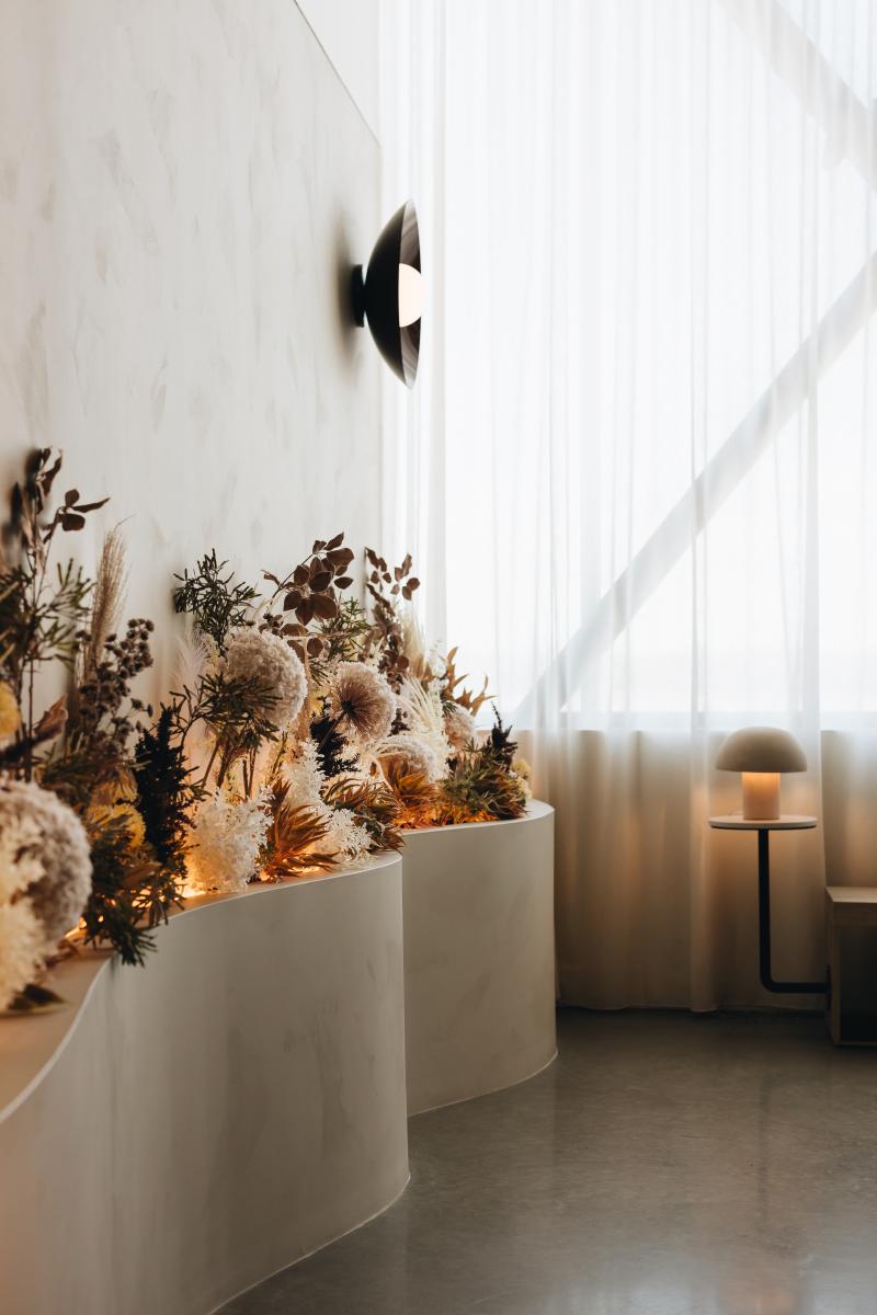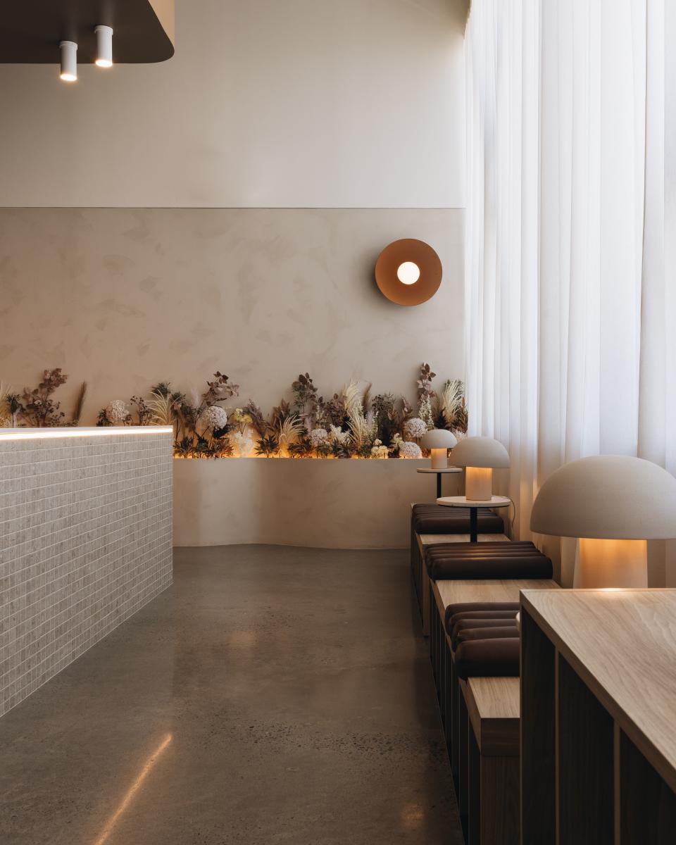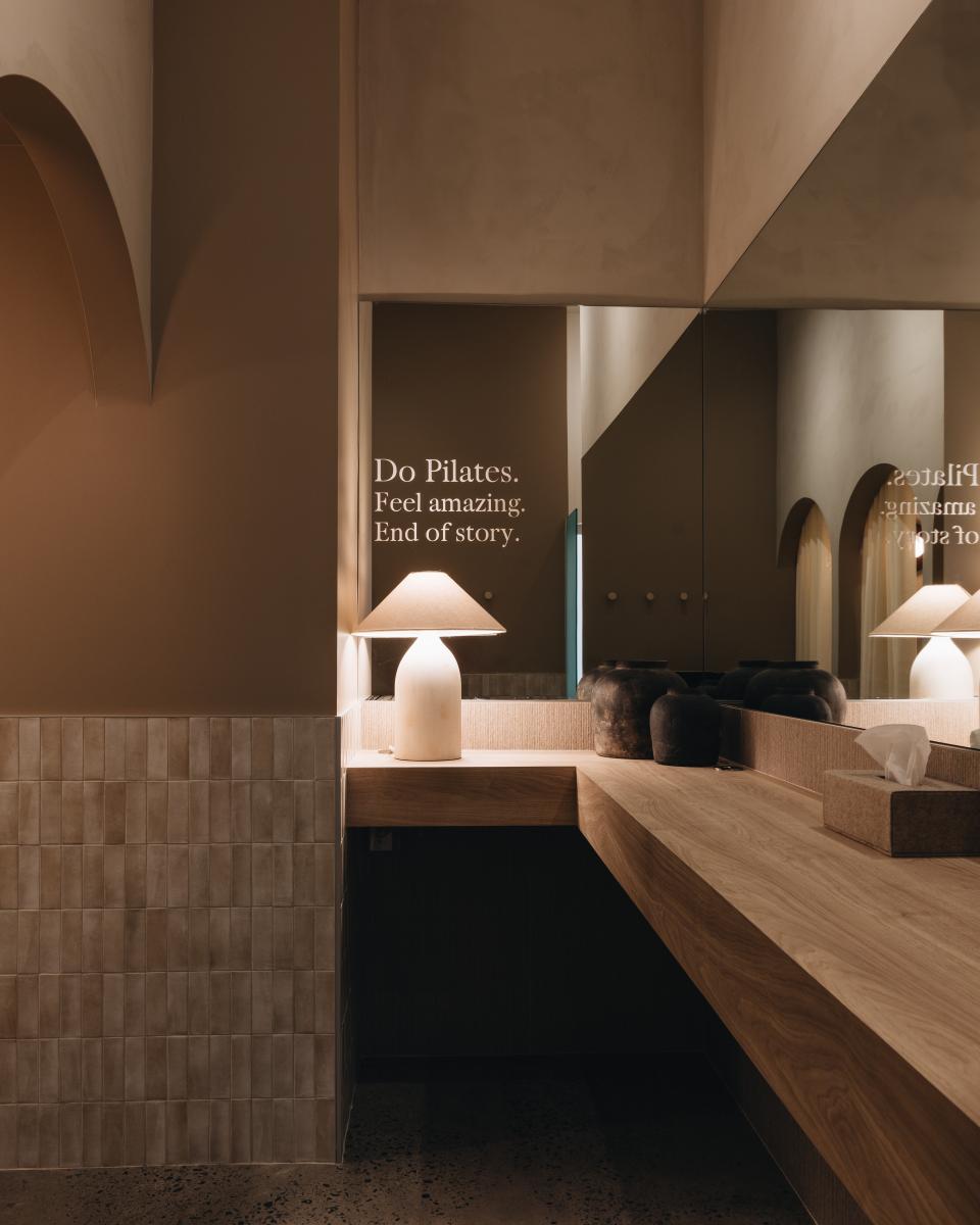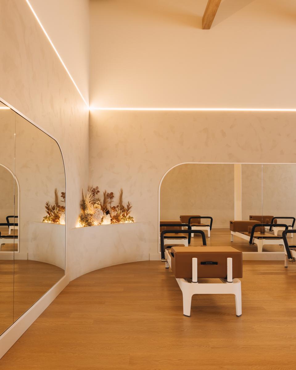 La lumière naturelle glisse sur des parois courbes, comme une main qui accompagne un mouvement. Les matériaux sont choisis pour leur chaleur, leur capacité à se faire oublier pour mieux révéler la présence de l’instant. Ce centre de Pilates n’est pas seulement un lieu d’exercice : c’est une architecture en mouvement, une bulle suspendue, un dialogue permanent entre le corps et l’espace. Un lieu où l’on vient s’aligner, se reconnecter, se retrouver.
