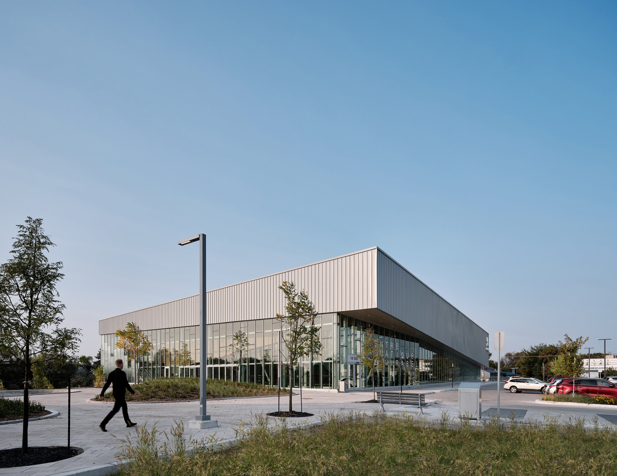 L’implantation du nouveau centre a d’ailleurs été soigneusement pensée afin de tirer avantage des conditions d’ensoleillement, mais également afin de respecter les caractéristiques écologiques du site. La présence d’un ruisseau du côté sud a ainsi engendré un défi, mais également une occasion de mettre en valeur la biodiversité propre au secteur.