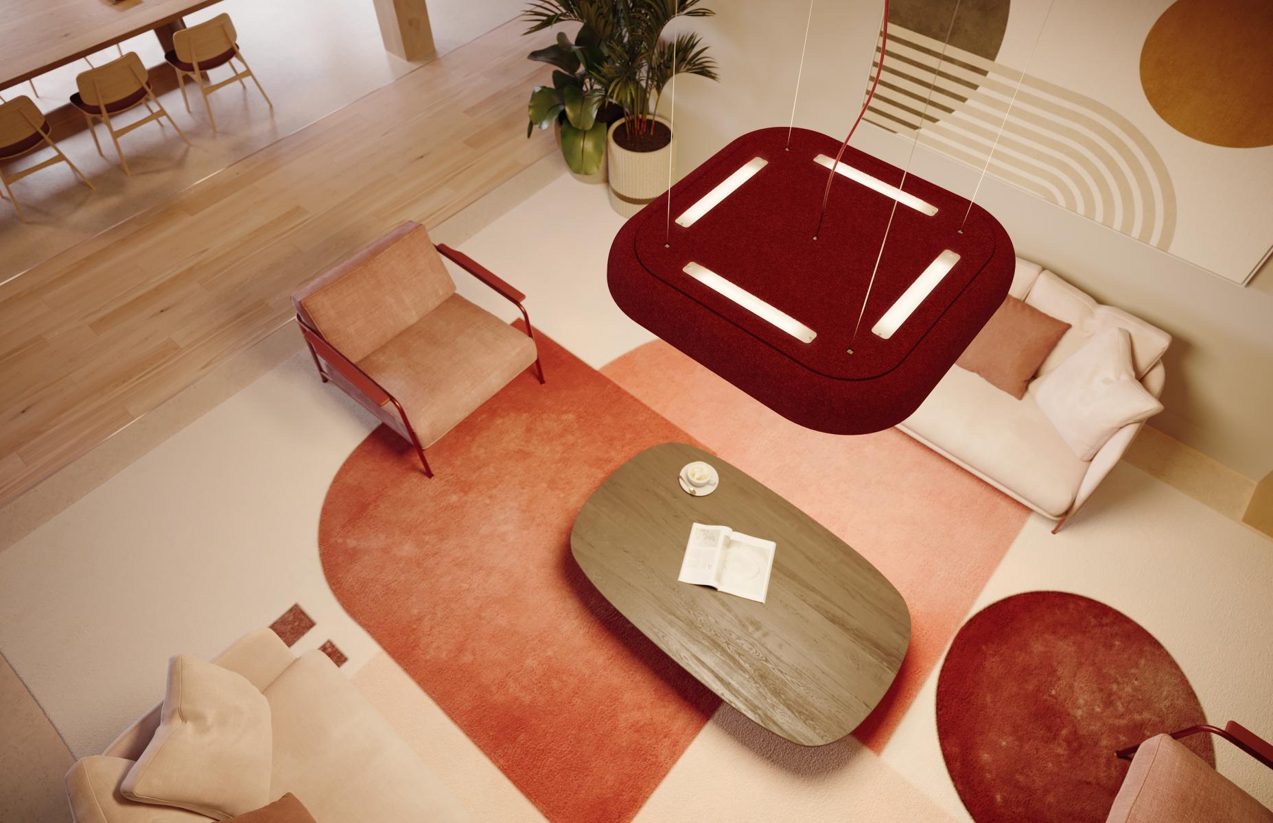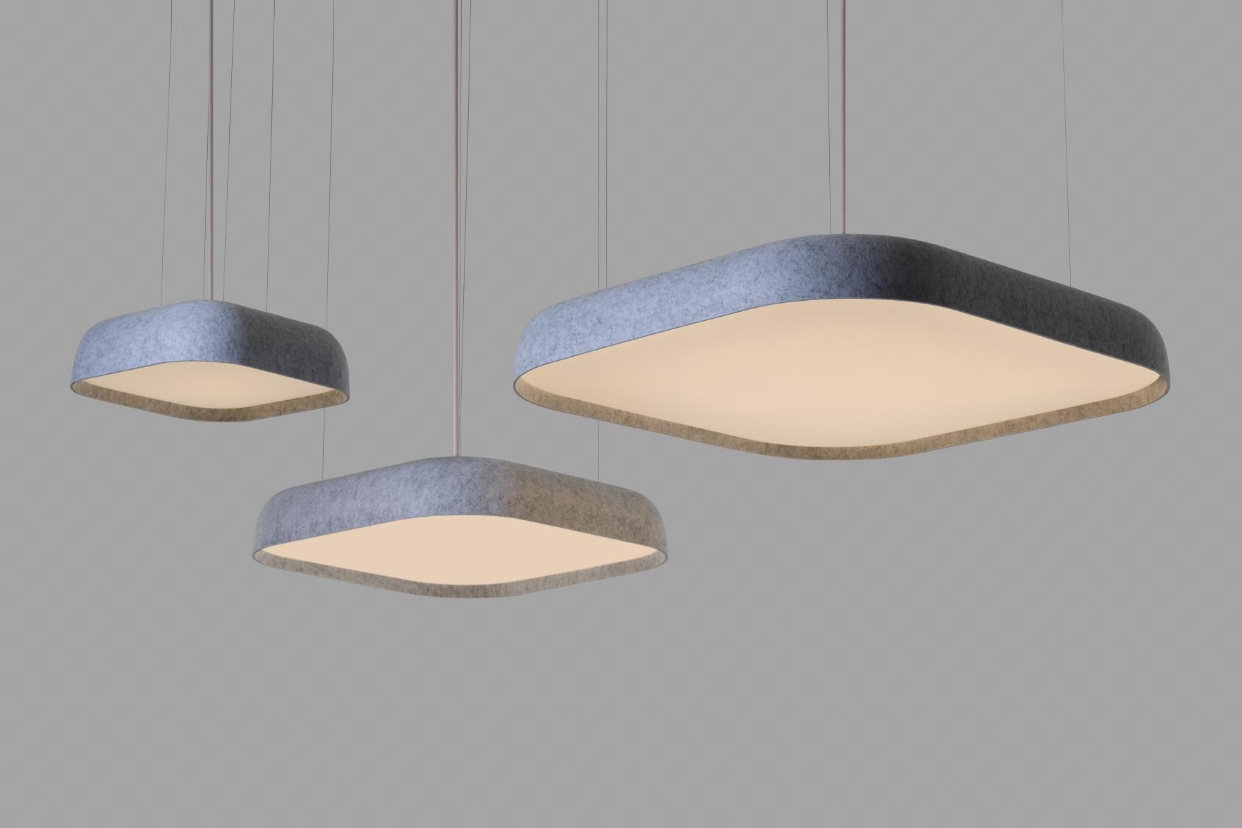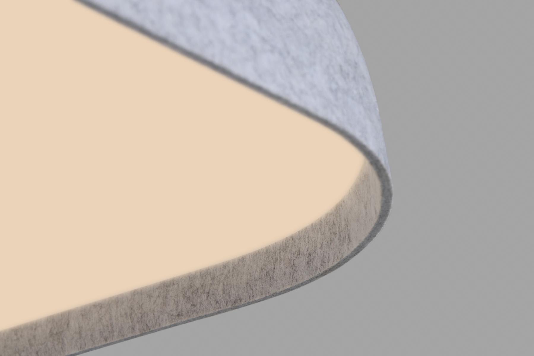 Le luminaire a une hauteur de 4.2", contribuant à un look et une sensation minimalistes, quelle que soit la taille. La forme extérieure de Cirra est en feutre synthétique composé à 50% (en poids) de feutre de polyéthylène recyclé (PET), ce qui aide à réduire le bruit ambiant et est disponible en 24 options de couleur différentes.