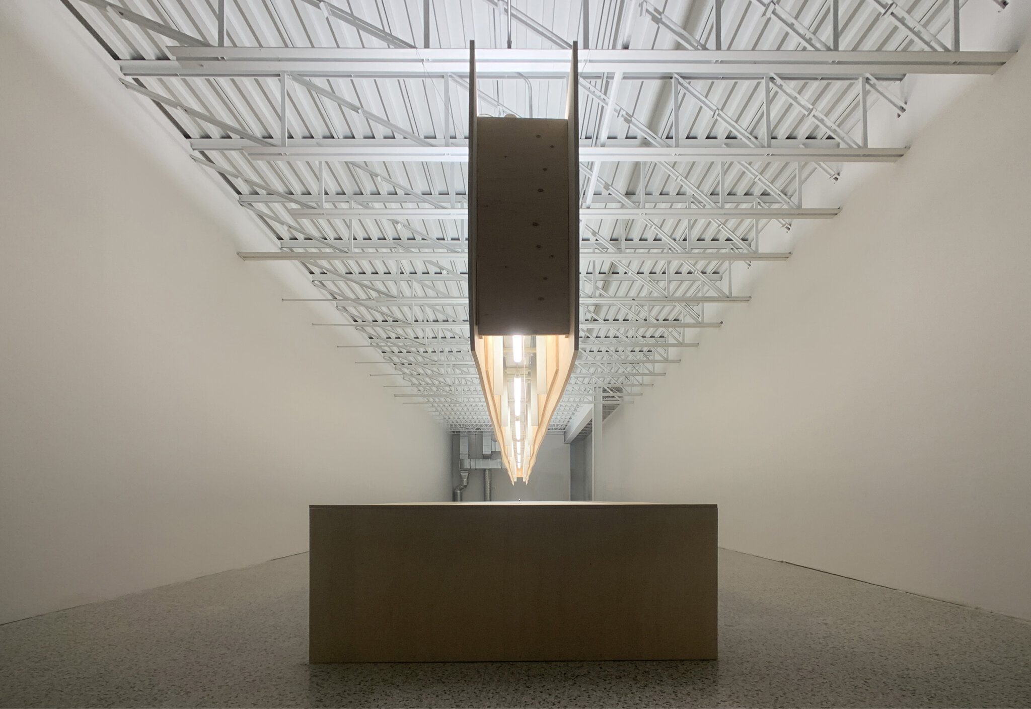 La force expressive et sculpturale du geste réside en ses continuité et ponctuation. Le geste de contreplaqué principal ininterrompu ; les composantes et éléments secondaires sériels.