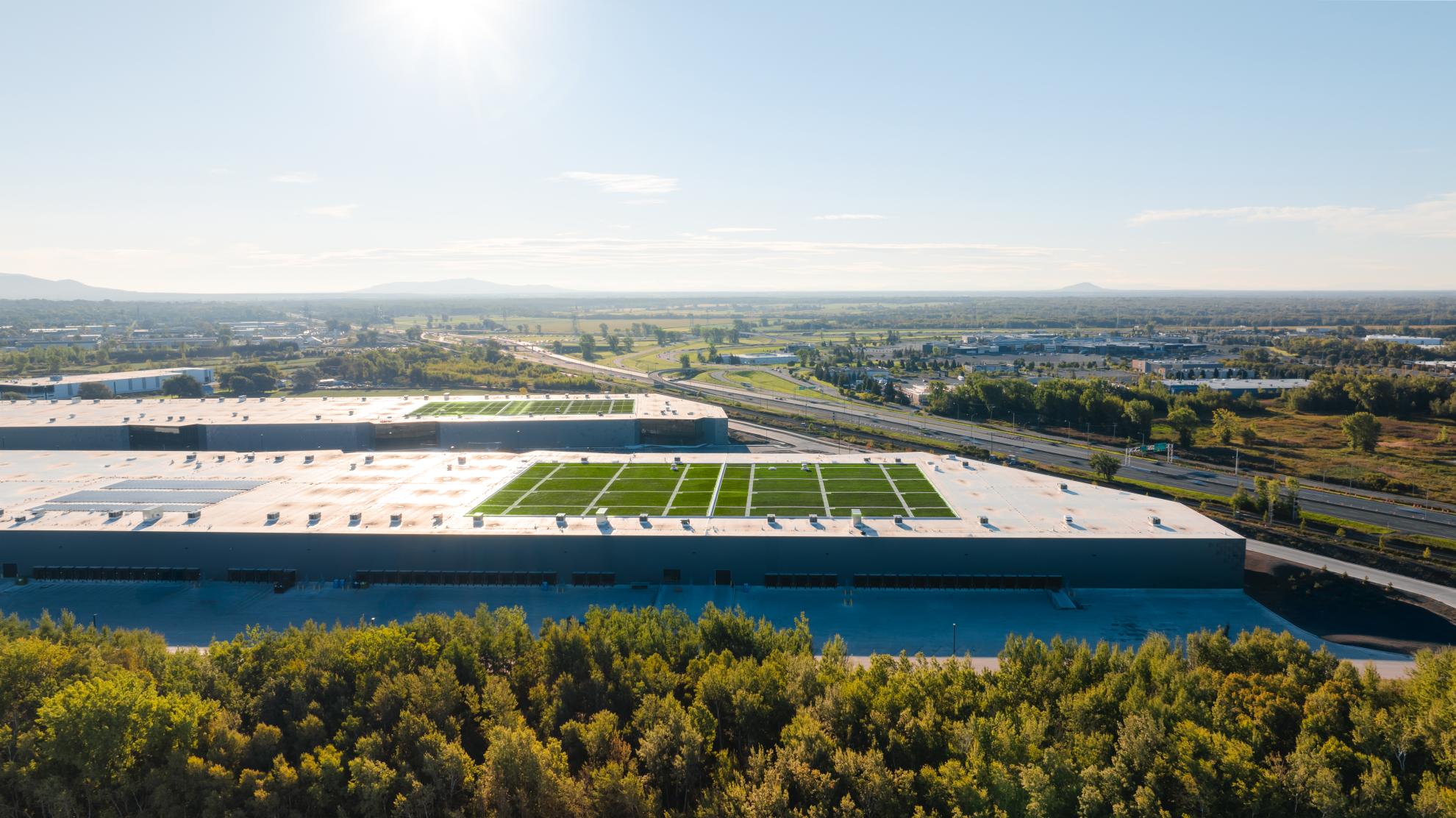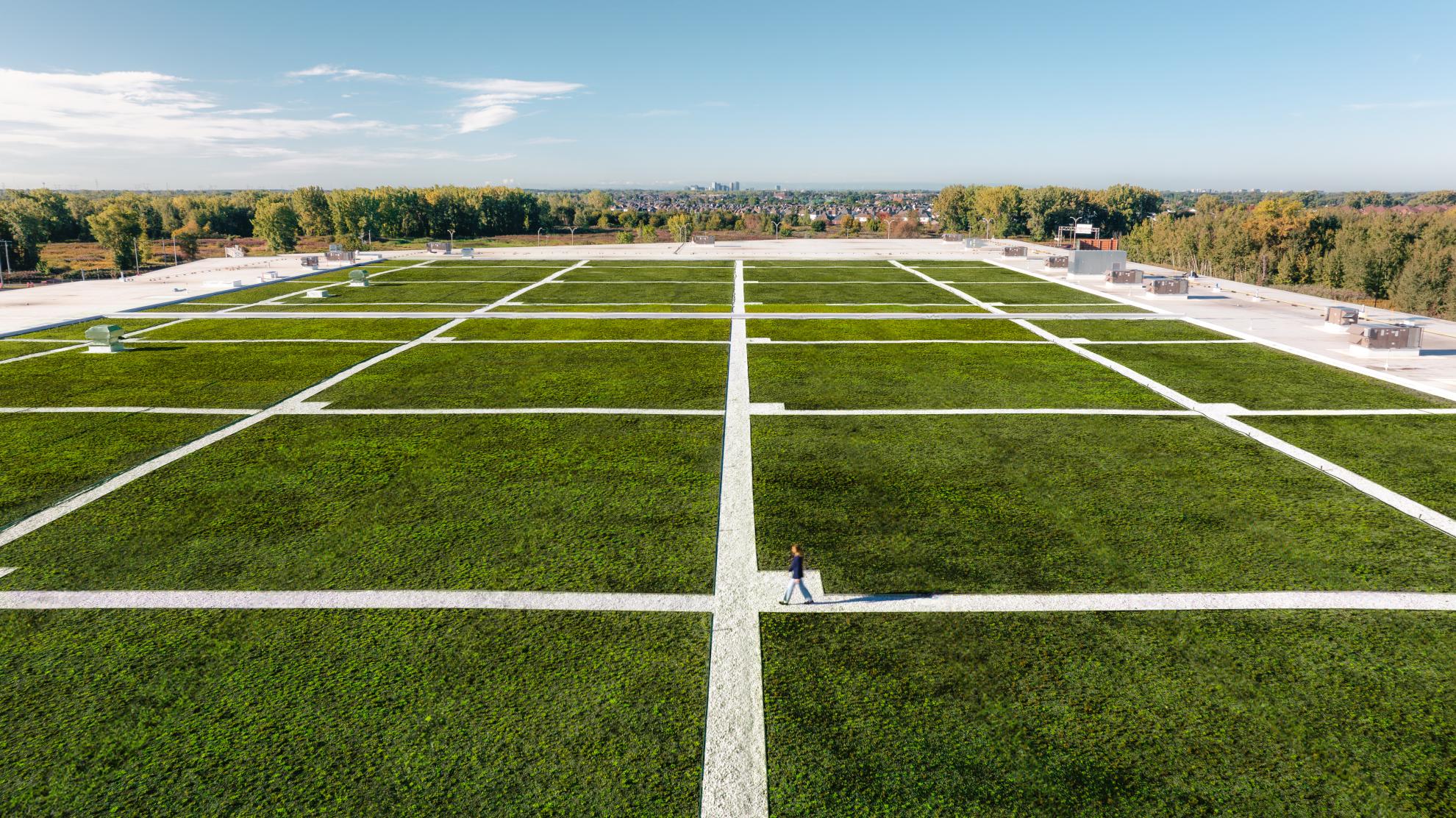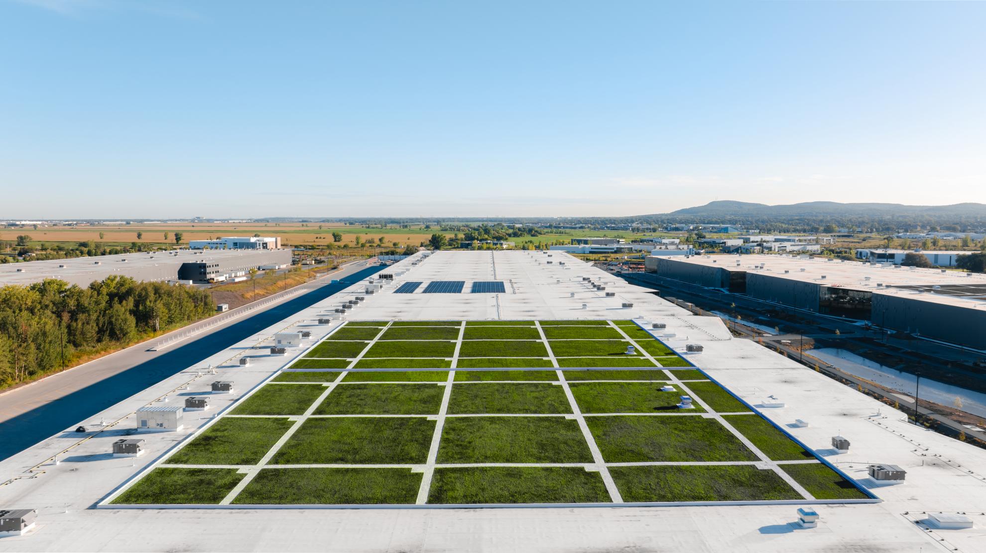 Ce toit vert de plus de 246 000 pieds carrés s'étend sur deux bâtiments (plus de quatre terrains de soccer) est situé sur le campus industriel d'Écoparc Saint-Bruno, ayant récemment obtenue la certification Bâtiment à carbone zéro et visant la certification LEED Or. La toiture végétalisée conçu incarne une vision avant-gardiste du design durable, alliant esthétisme, performance environnementale et bien-être des usagers. Ce projet novateur s’inscrit dans une démarche intégrée d’urbanisme écologique visant à réduire l’empreinte carbone tout en favorisant la biodiversité.