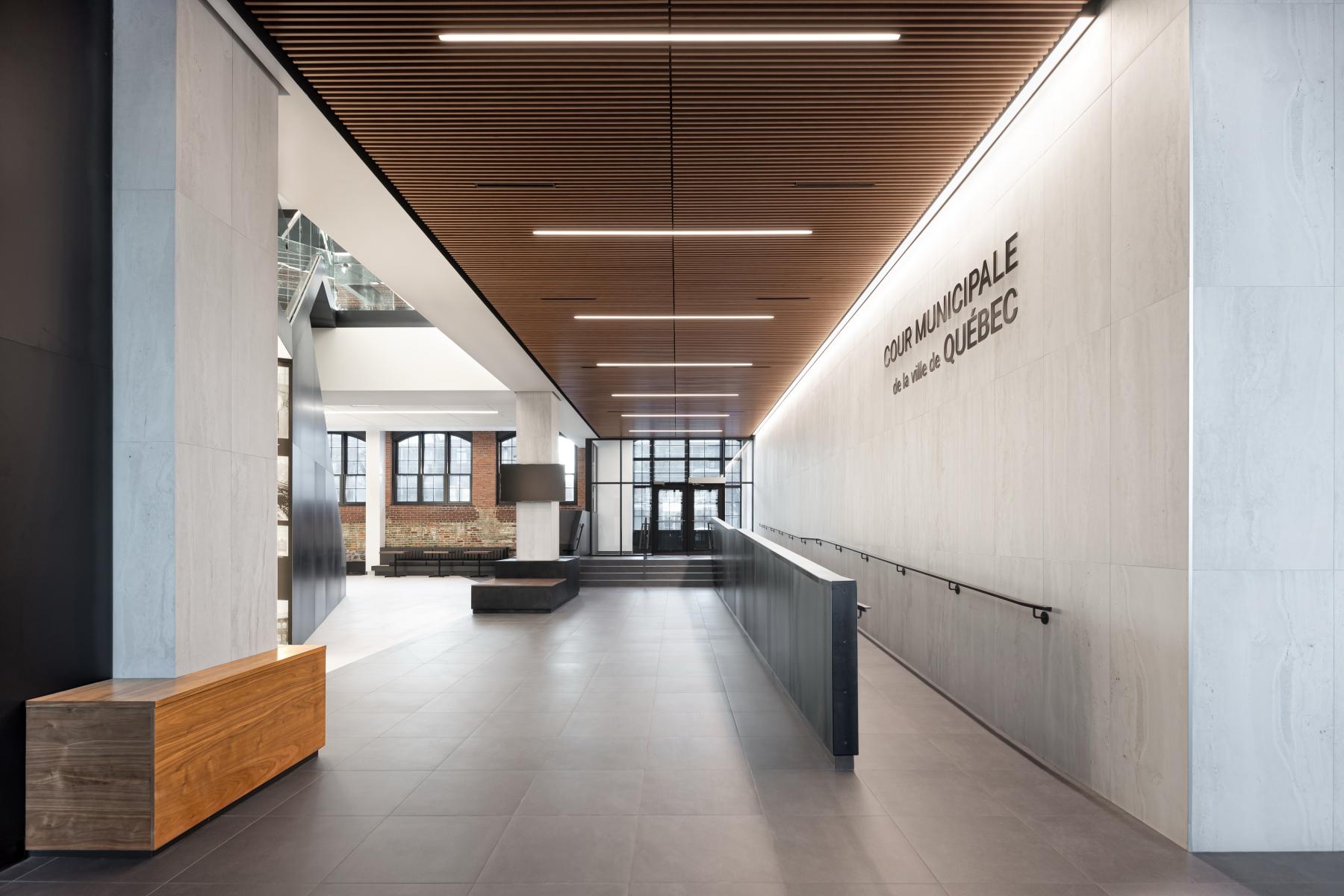 La réhabilitation du bâtiment F.X. Drolet, situé dans le quartier historique de Saint-Roch à Québec, marque une transformation exemplaire d’un édifice industriel du début du XXᵉ siècle en un espace dédié à la justice et la sécurité publique. Ce projet illustre la capacité de l’architecture à concilier préservation patrimoniale et adaptation fonctionnelle, en intégrant les besoins contemporains tout en valorisant les éléments historiques du bâtiment.