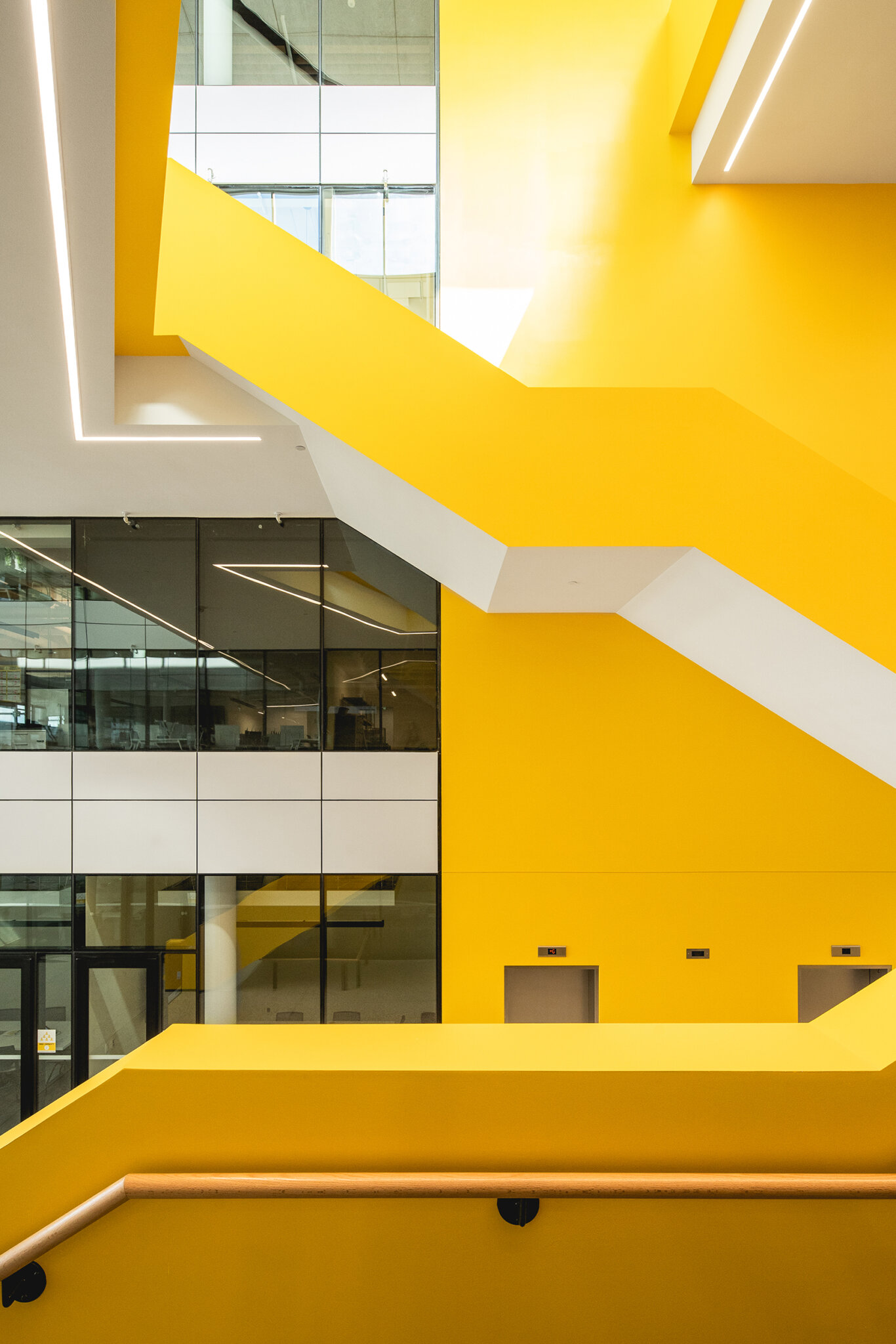 Les préoccupations de la conception du design d’intérieur visaient à donner aux utilisateurs des espaces baignés de lumière naturelle, et leur proposer une véritable expérience d’espace collaboratif.